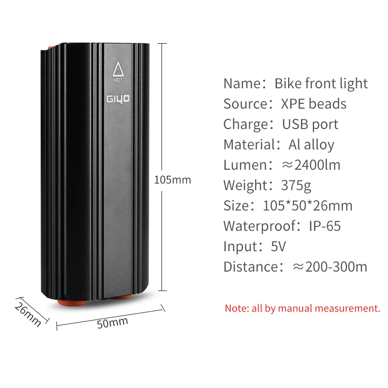 Source: 2 x T6 leds;Charging: USB, 4-5 Hours