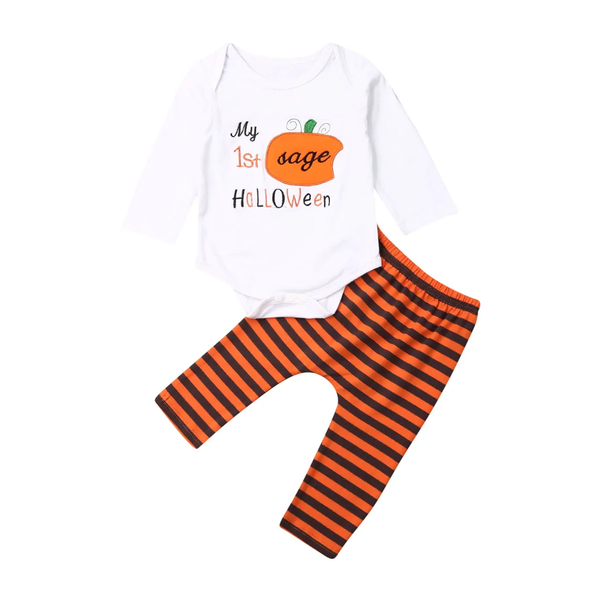 Новейшая модная одежда для маленьких мальчиков и девочек на ХэллоуинТыкваОдежда! Высокое качество и абсолютно новый 100% Основной цвет: как на картинке Новинка в моде Материал:Смесь хлопкаОбратите внимание: если ваш ребенок пухленький, мы рекомендуем выбрать больший размер, спасибо. Просим перепроверять размеры детей, рост и полноту по размерной таблице перед покупкой/подачей заявки. Спасибо. Посылка включает в себя:1 комбинезон + 1 штаны Таблица размеров: