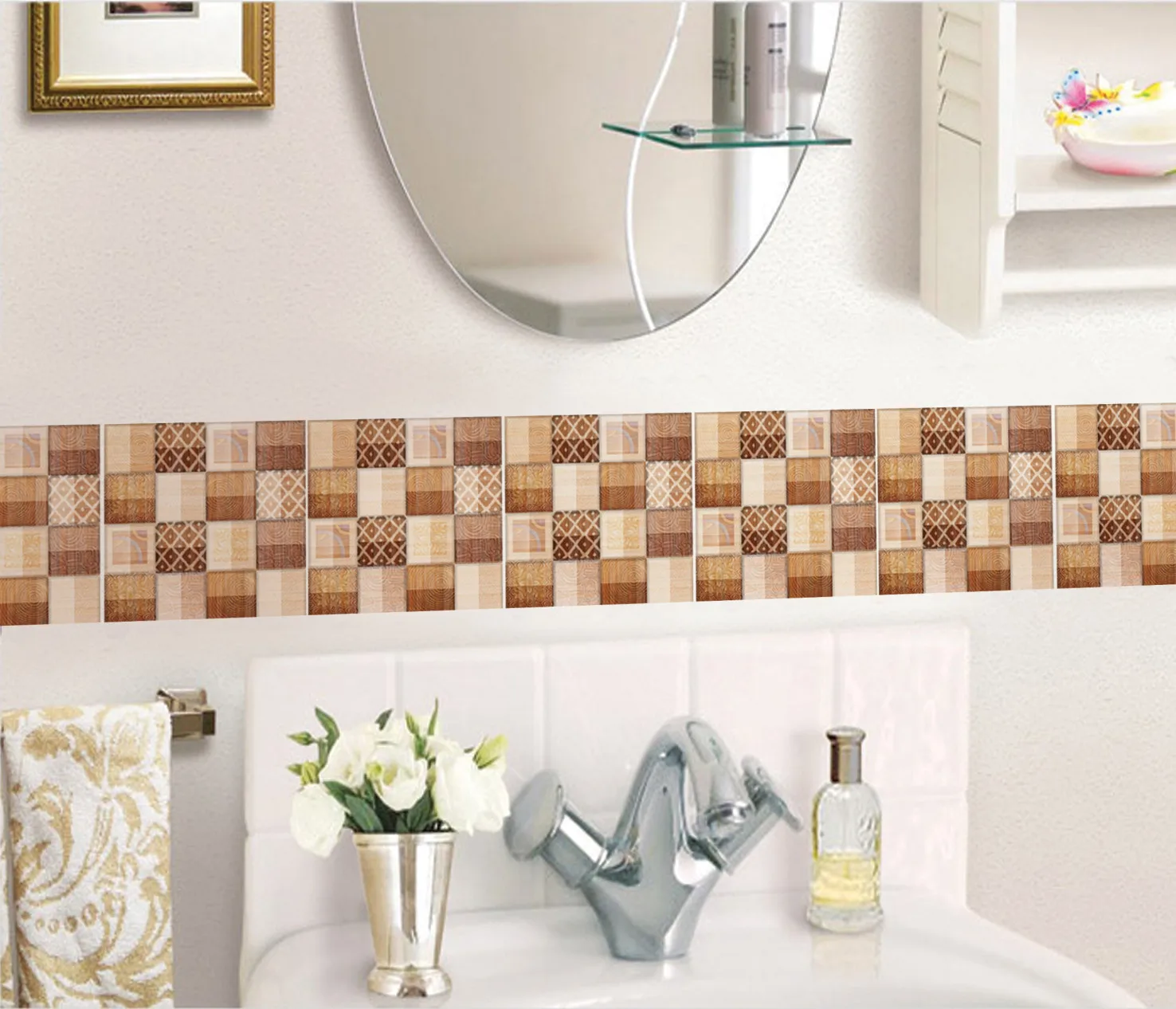 3D European simulation tile sticker 6PC home decoration wall sticker bathroom organizer carreaux autocolant