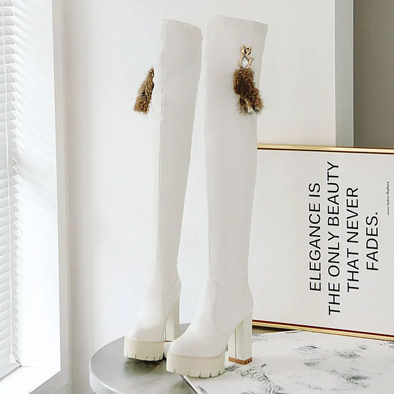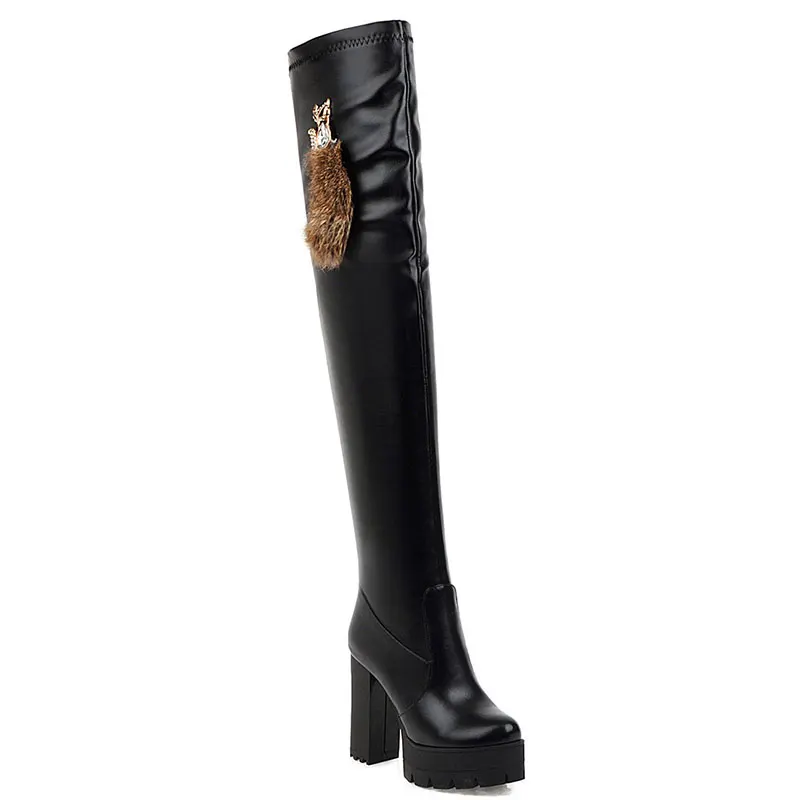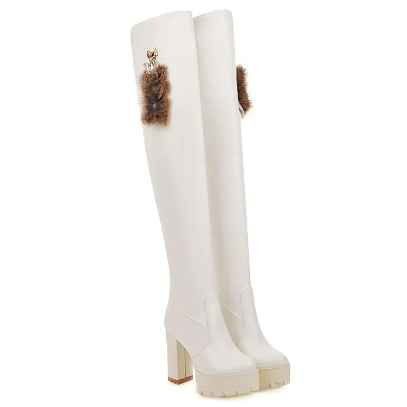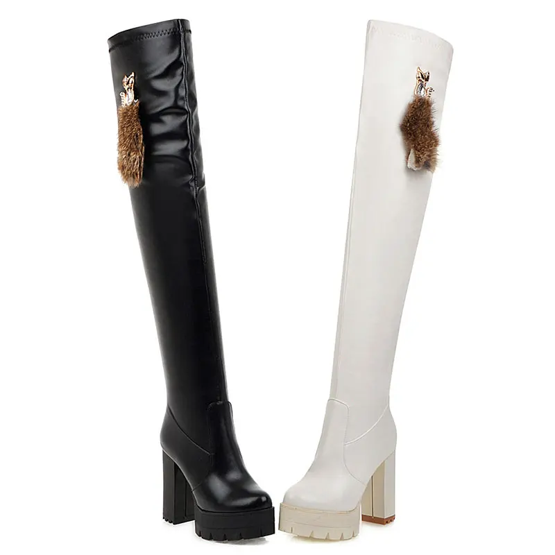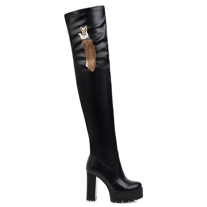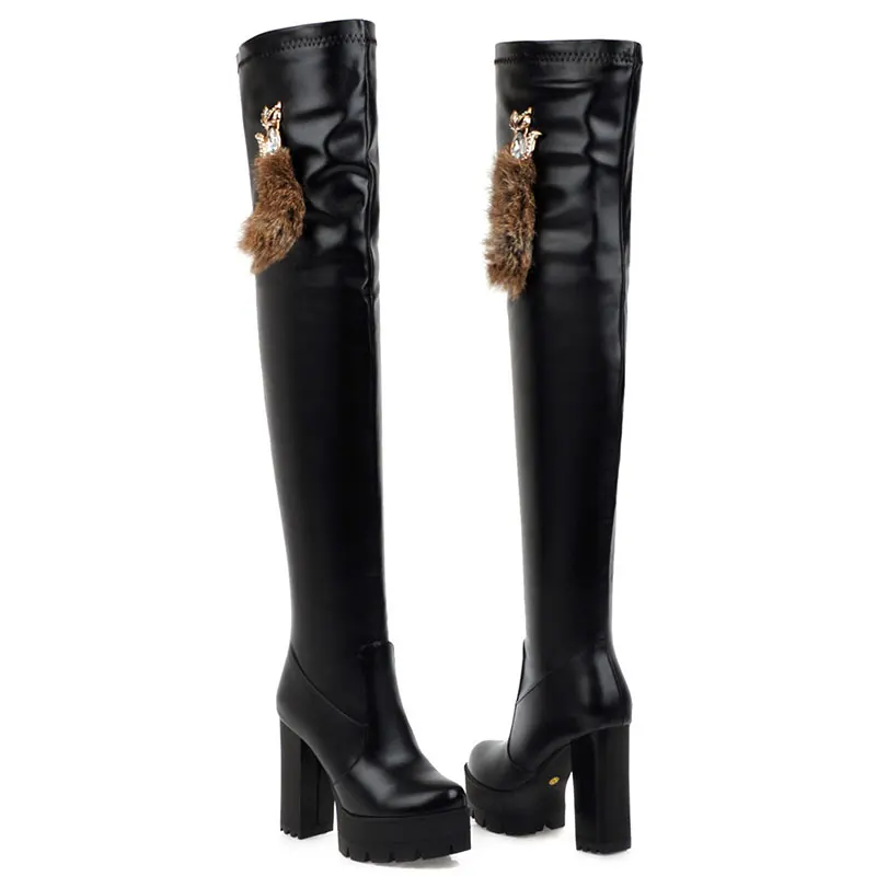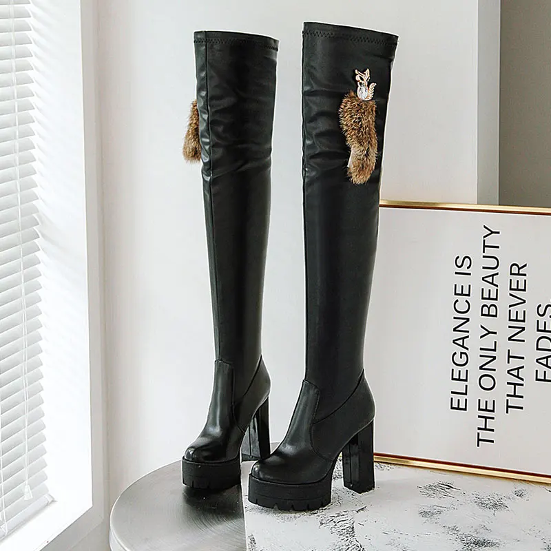 Sgesvier/Сапоги выше колена; Модная обувь; Женские сапоги из мягкой искусственной кожи; Сезон осень-зима; Высокие сапоги на платформе и толстом высоком каблуке; G752