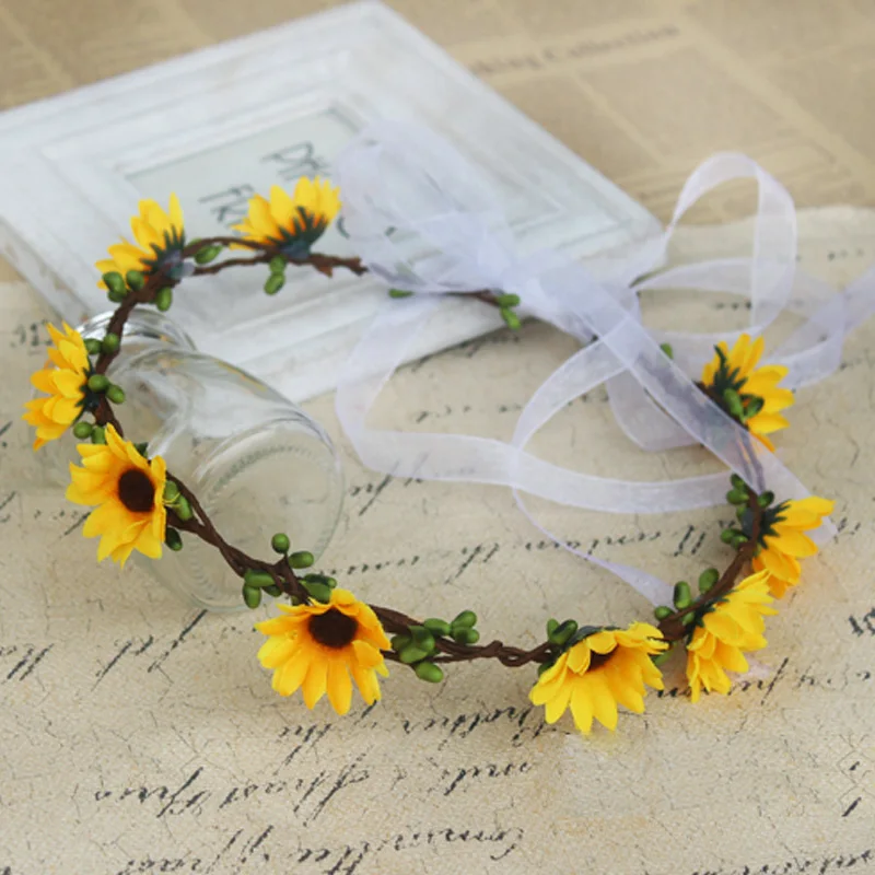 Искусственная желтая повязка на голову из ротанга, венок из подсолнухов