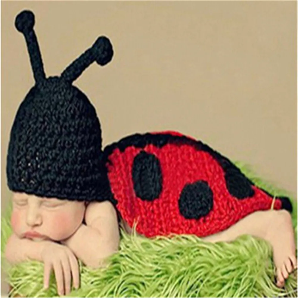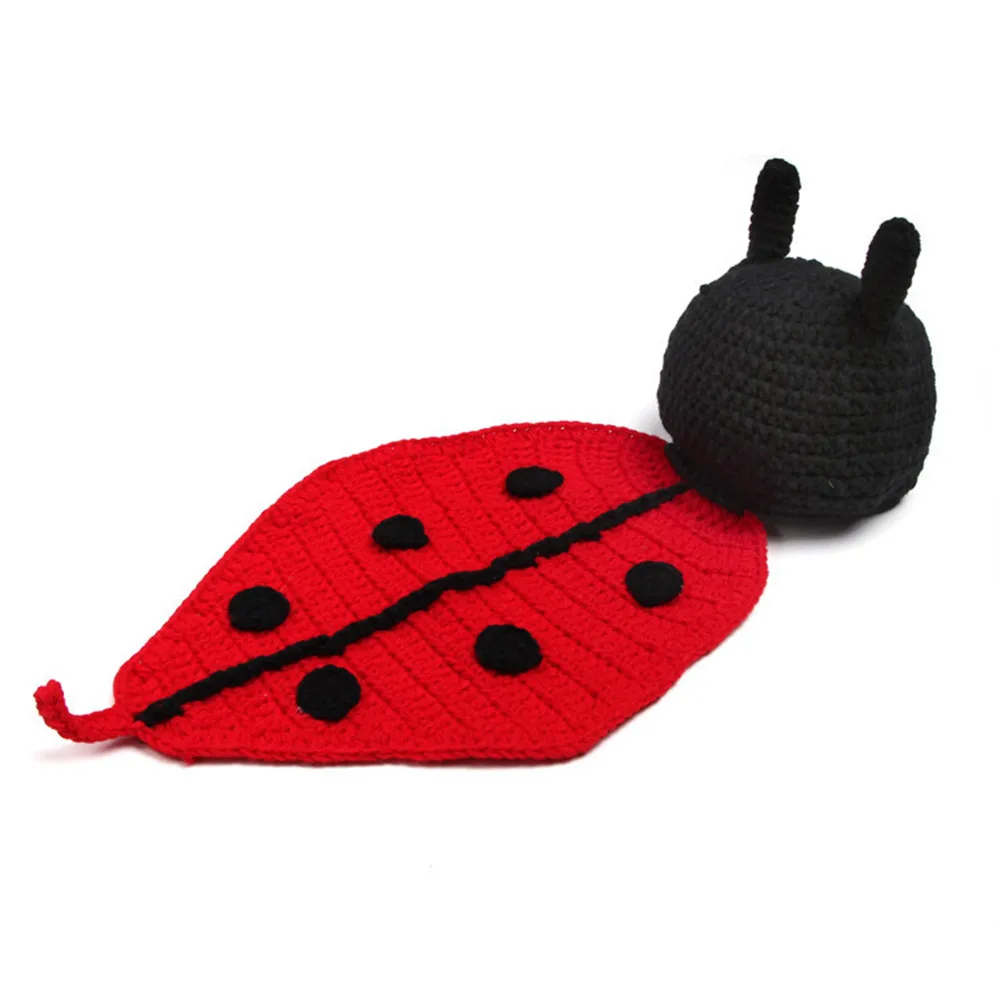 Для маленьких мальчиков и девочек трикотажные животных шапочка "Божья коровка" комплект для новорожденных Подставки для фотографий Покрывало «Русалочка», ручная вязка наряд для фотосессии новорожденных Костюмы KK