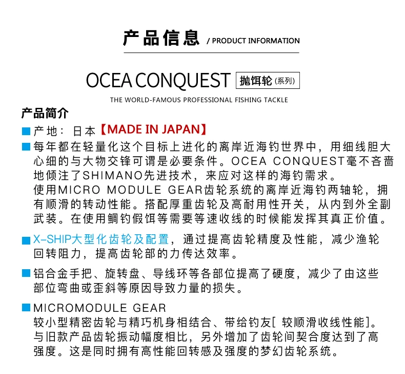 Shimano рыболовная катушка '18 OCEA CONQUEST CT Высококачественная японская катушка