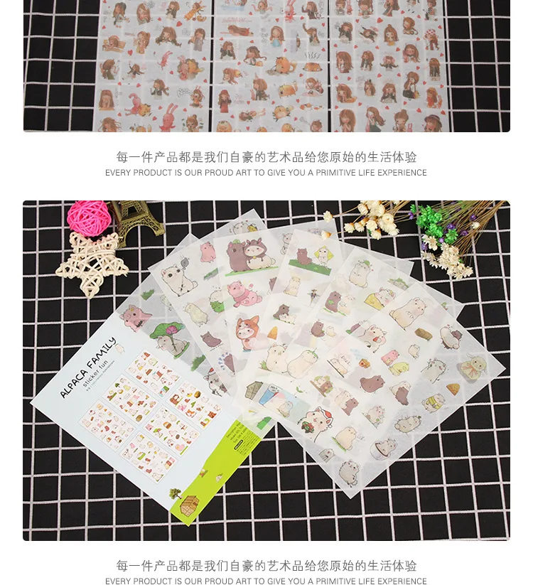 6 листов Kawaii мультфильм канцелярские наклейки s милые наклейки Alpaca бумажный стикер на клейкой основе для детей DIY Скрапбукинг принадлежности для альбома