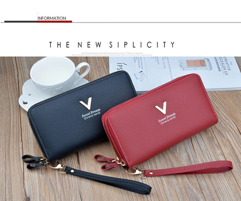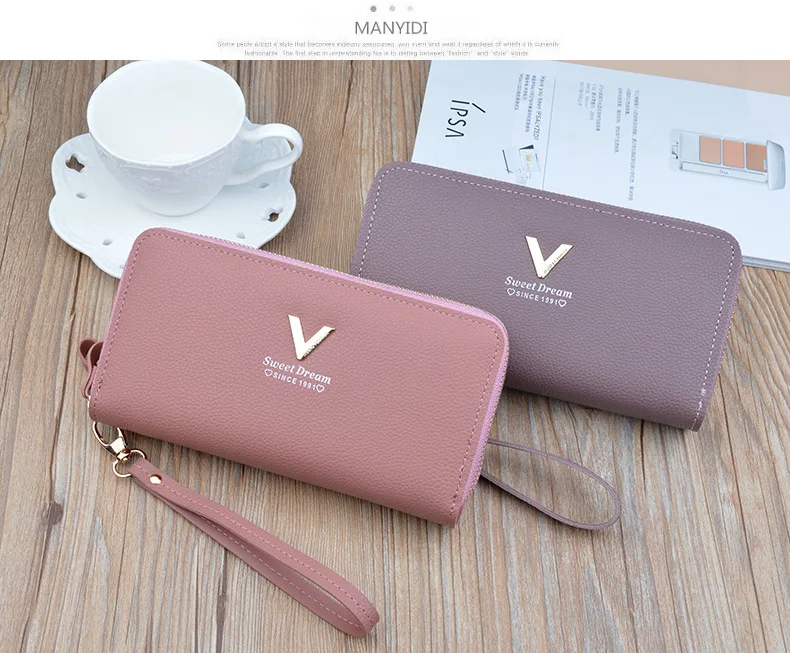 card holder key credit passport 2019 fashion travel minimalist luxury long v pink leather