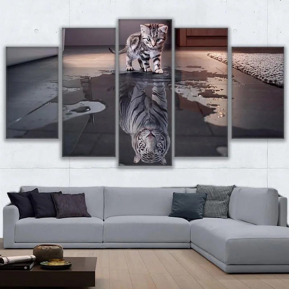 modname=ckeditorPainting Wall Art Canvas Frame For Living Room Nordic Decoration 5 Panel Animal Cat New Cuadros Tiger Picture Modular Poster