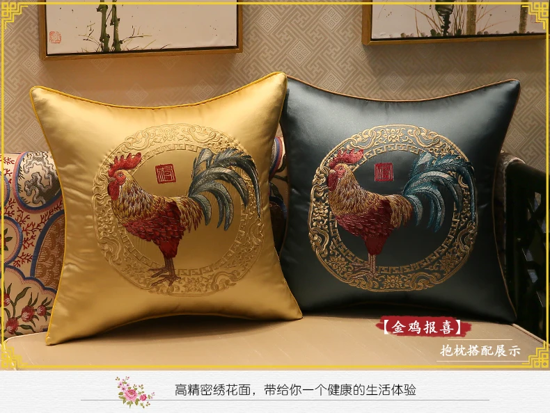 Бесплатная доставка Классическая петух поясная наволочка с внутренней подушкой Вышивка атласная Подушка кресло-подушка/автомобиль/гостиная комнаты; декор 30x50/45x45/50x50/40x60 см