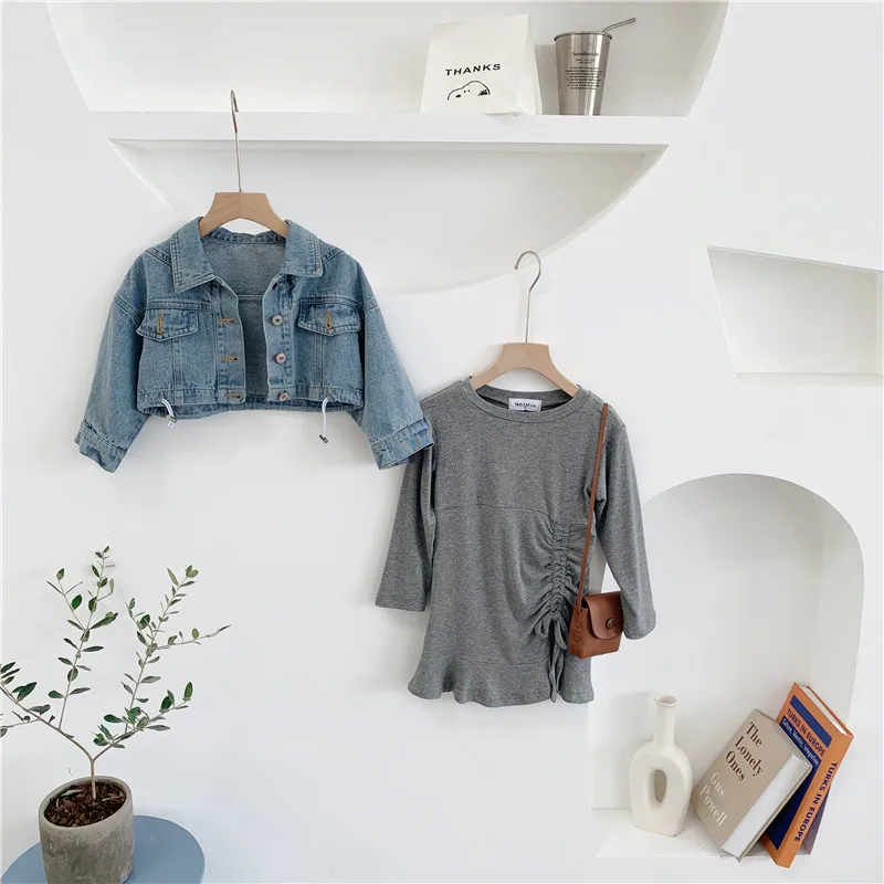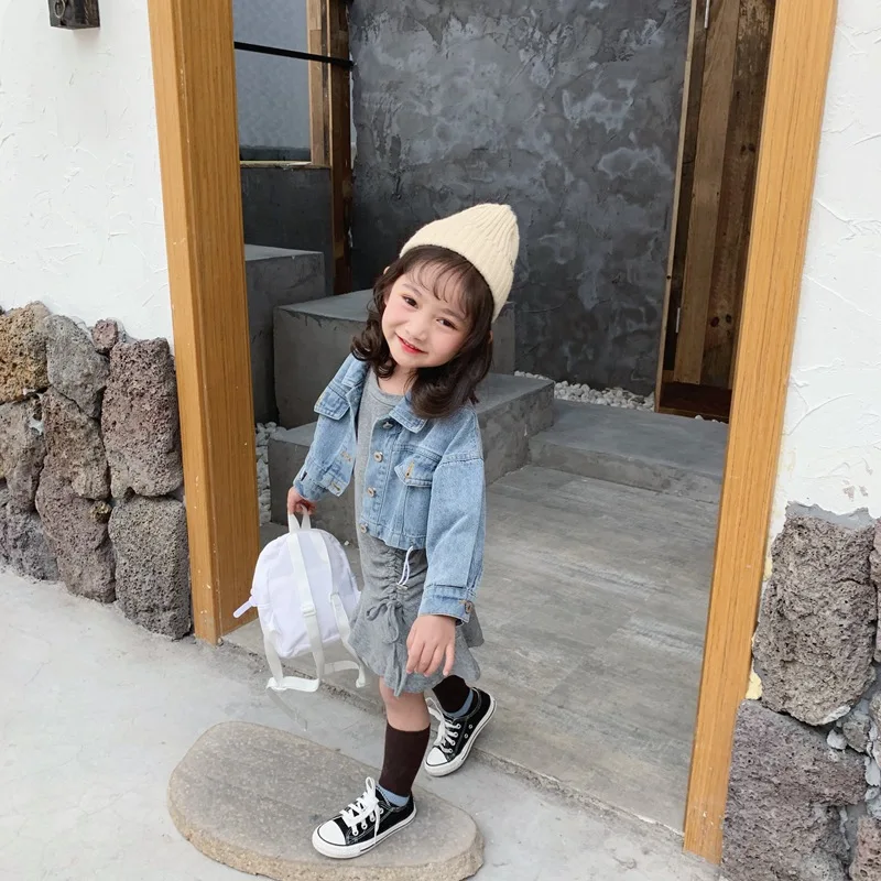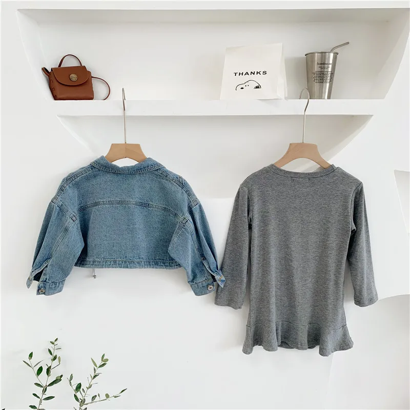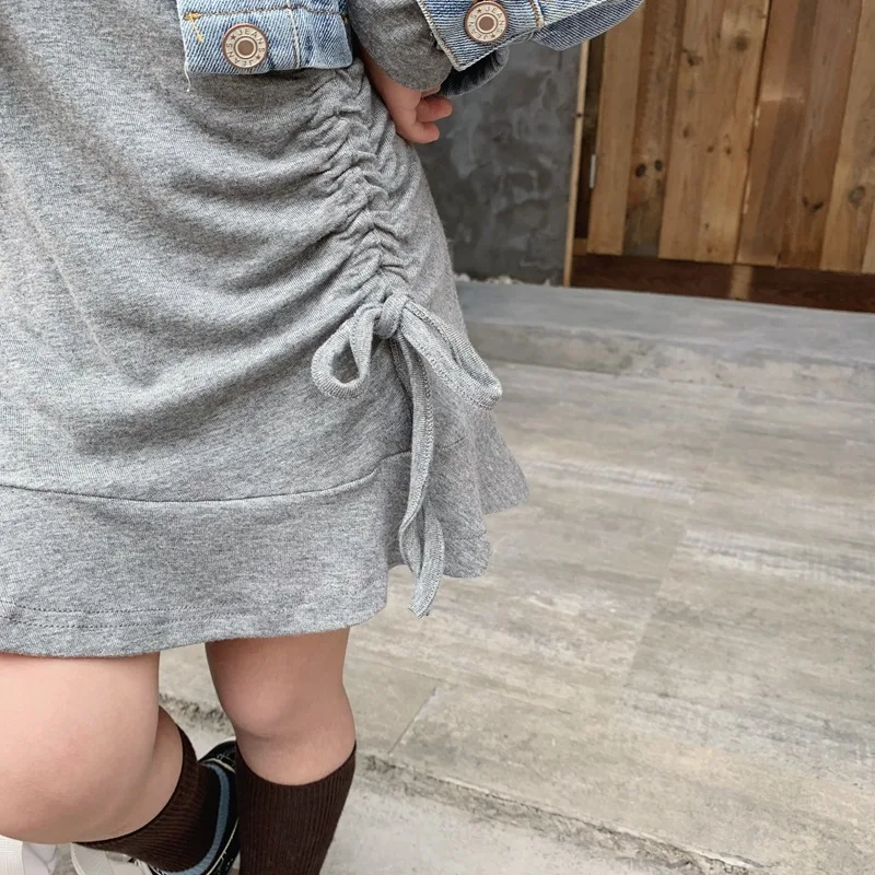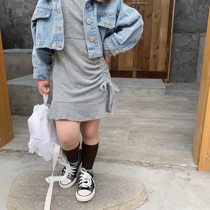 Осенняя Изысканная одежда для маленьких девочек дизайнерское платье с длинными рукавами и рыбий хвост + джинсовая куртка комплект из 2 предметов, детская одежда комплекты детской одежды Состояние на 100% абсолютно новый и высокого качества Материал: хлопок Размер: подходит для детей 2-7 лет
