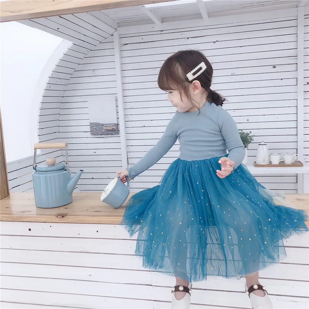 Одежда для маленьких девочек Вязаное вязаное платье принцессы с длинными