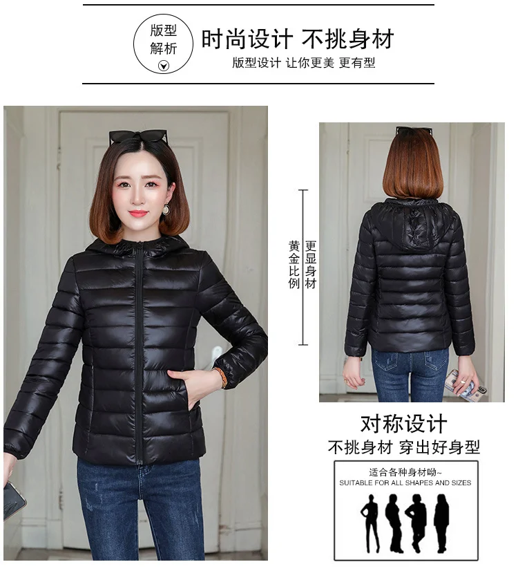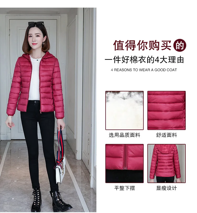 Тонкая женская зимняя теплая куртка с капюшоном, пальто большого размера, женская красная черная короткая зимняя стеганая ветровка, парка-пуховик, большие размеры