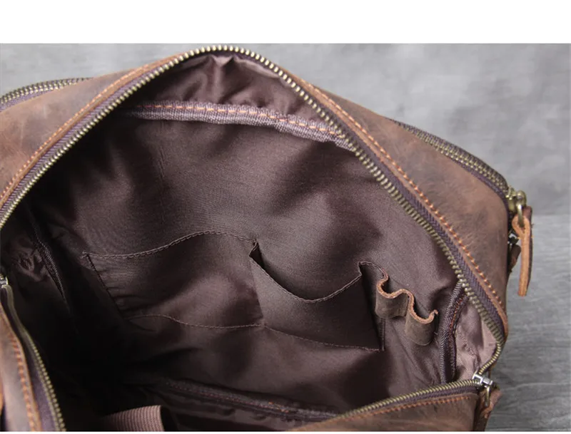Материал: натуральная кожа (кожа Crazy horse) Подкладка: полиэстер Размер: 30*10*38 см (Д * Ш * В) Вес: около 1,5 кг Стиль: винтажный, простой, Повседневный, модный Цвет: Кофе Внимание: 1. 1 дюйм = 2,54 см 1 см = 0,3937 дюймов 2. Размер может иметь погрешность 1-2 см, так как разные способы измерения. 3. Из-за угла съемки и проблем с освещением может быть небольшая разница с реальным изображением является чисто нормальной.