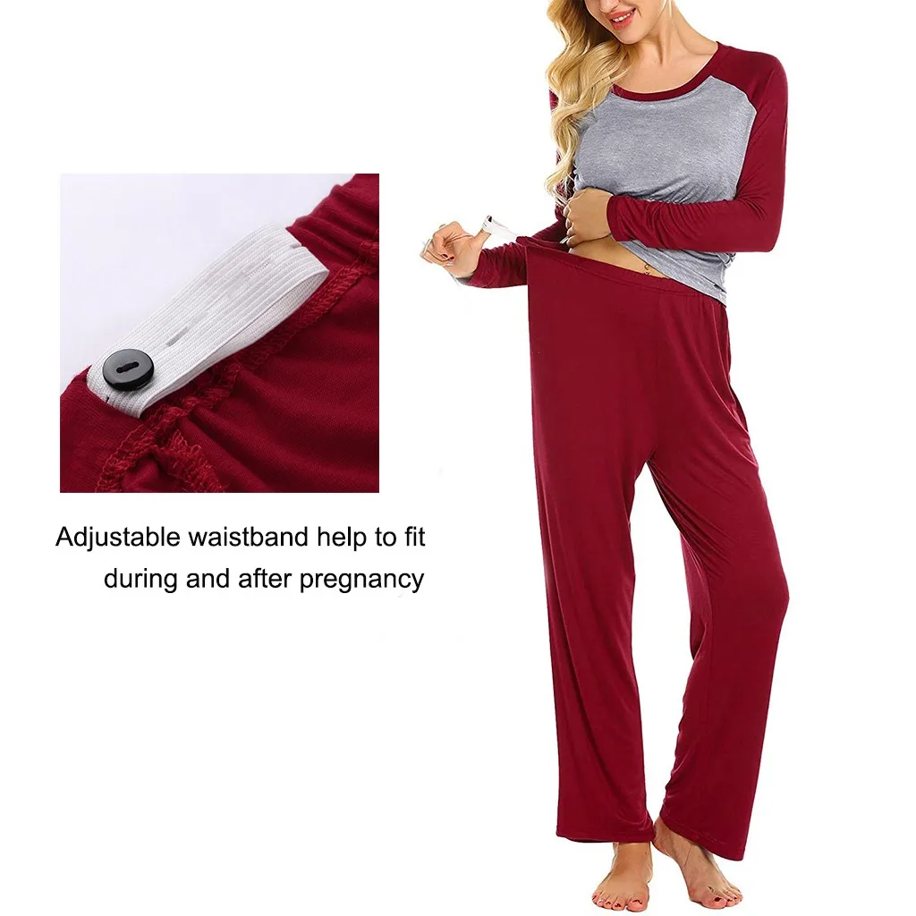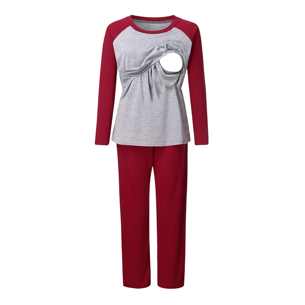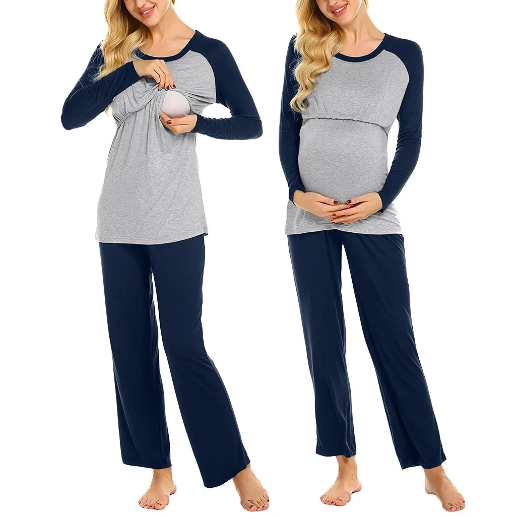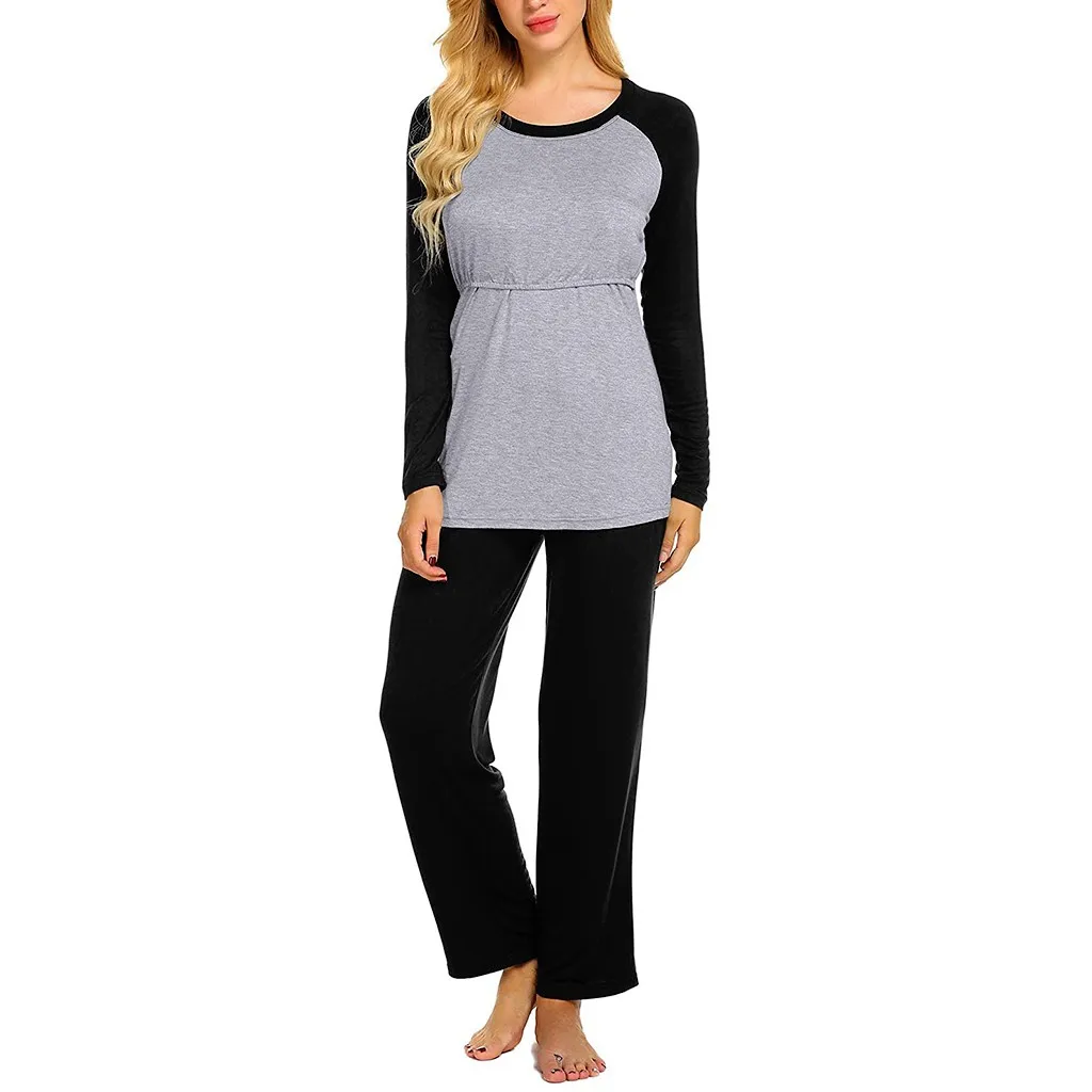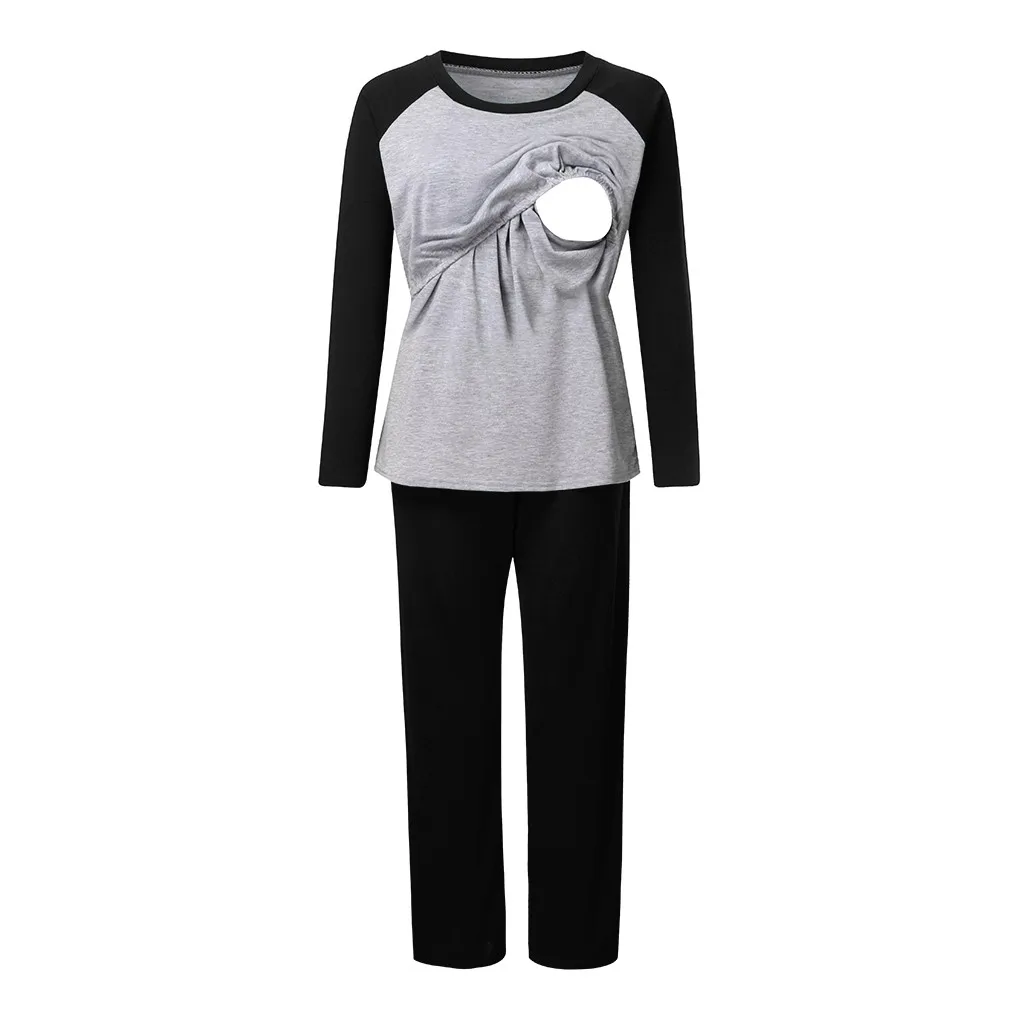 Женская футболка с длинными рукавами для беременных и кормящих детей, топы + штаны, пижамный комплект, костюм, пижама для мамы, invierno, Пижама для кормящих матерей