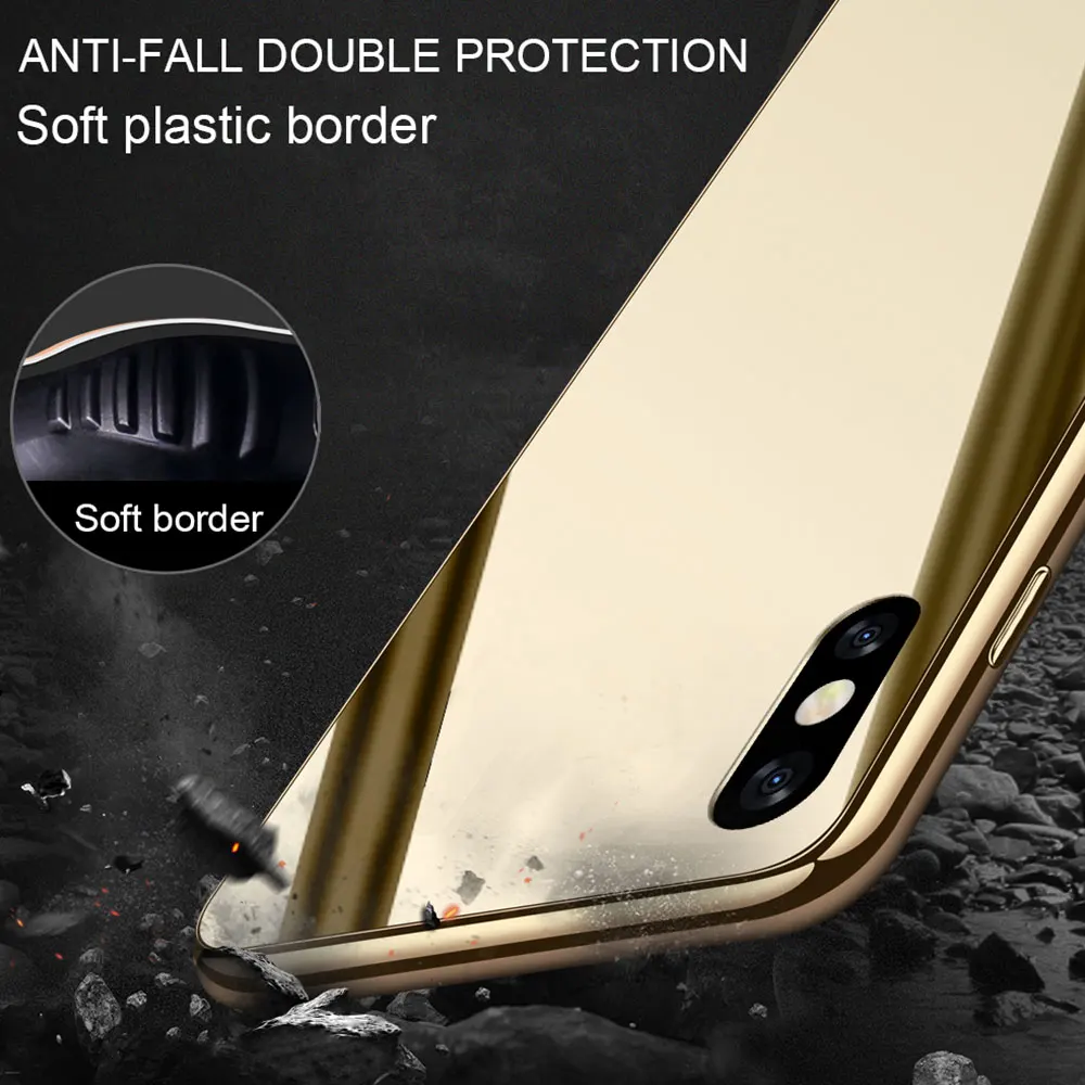 Роскошный зеркальный чехол KISSCASEДля iPhone 11/11 Pro/11 Pro MaxXR XS Max 7/8 Plus покрытая стеклянная задняя крышка Мягкий Бампер Coque Fundas