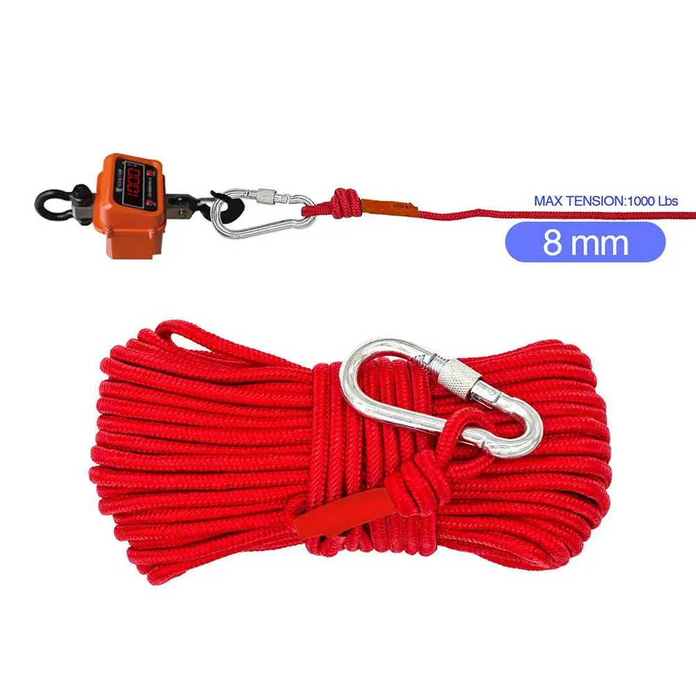 Аварийная спасательная веревка с карабином, магнитная рыболовная веревка, нейлоновая спасательная веревка, длина 20 м, диаметр 8 мм4