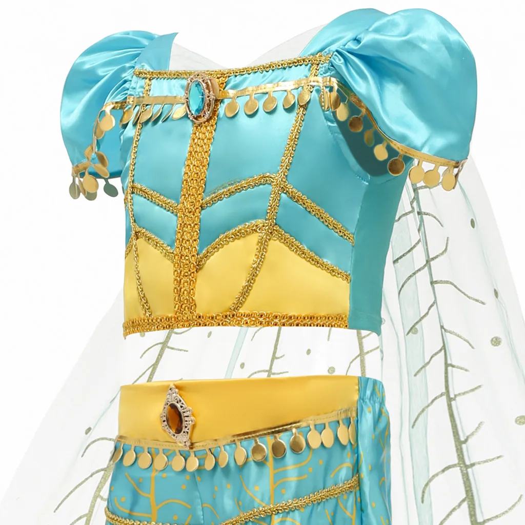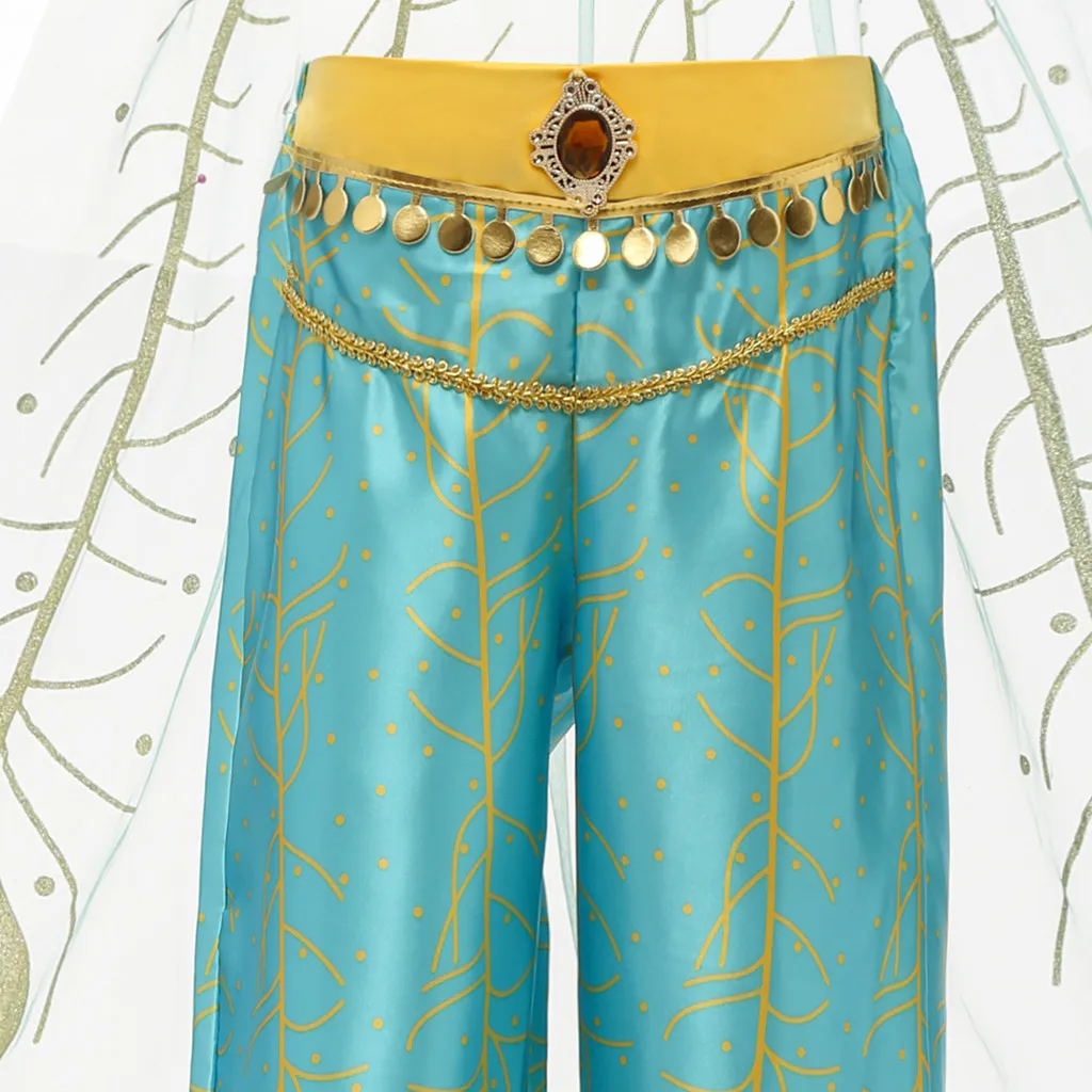 Маскарадный костюм принцессы с блестками для девочек; Укороченный топ из тюля; Штаны с кисточками; Праздничная одежда