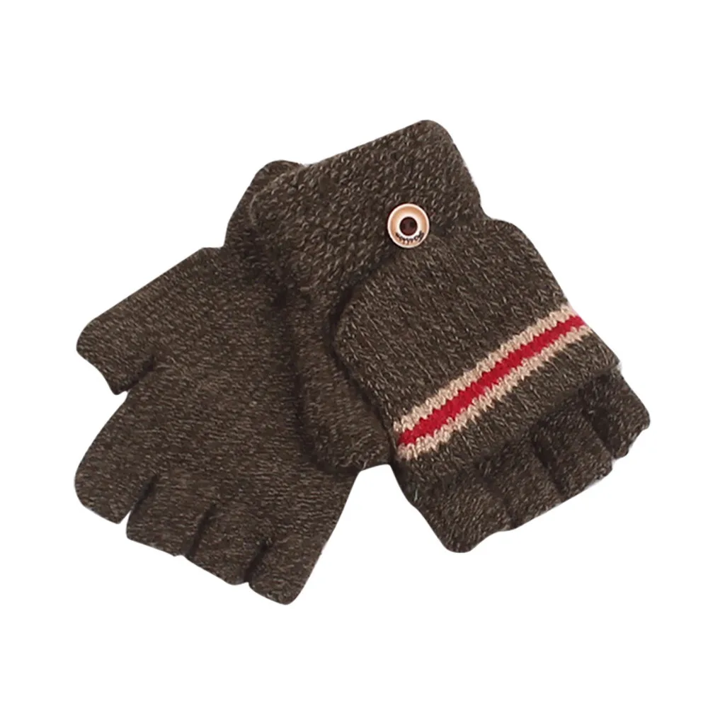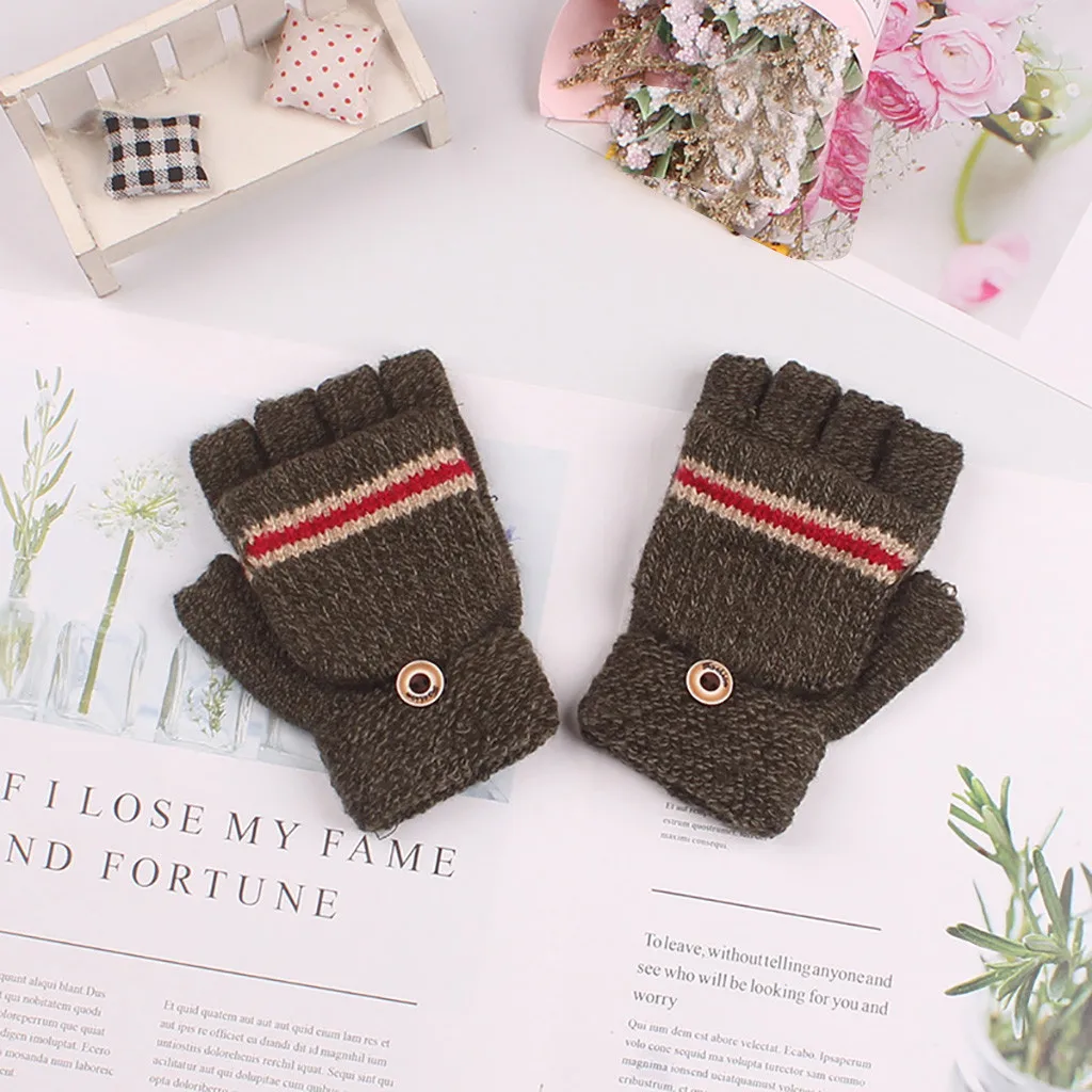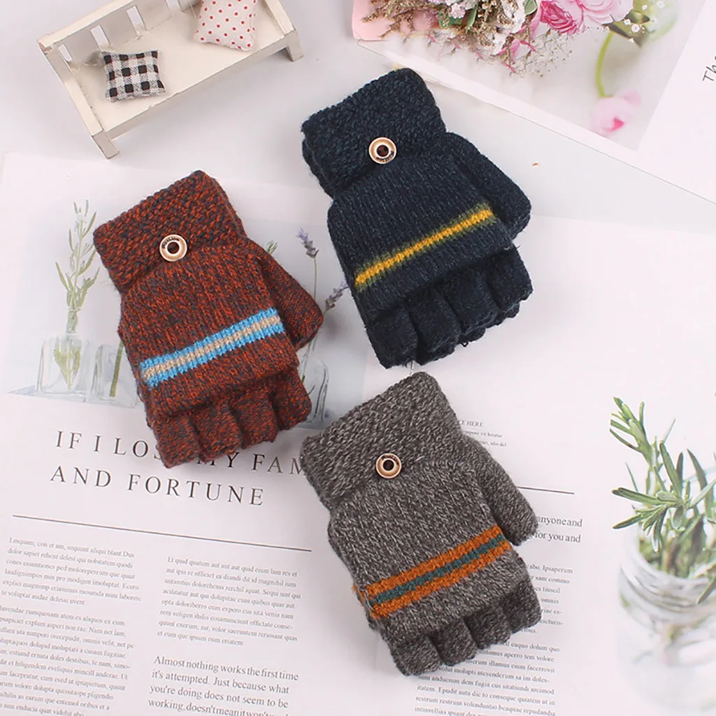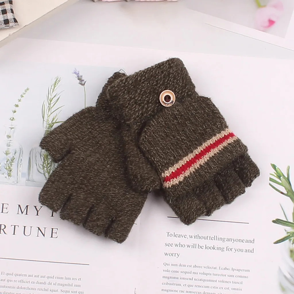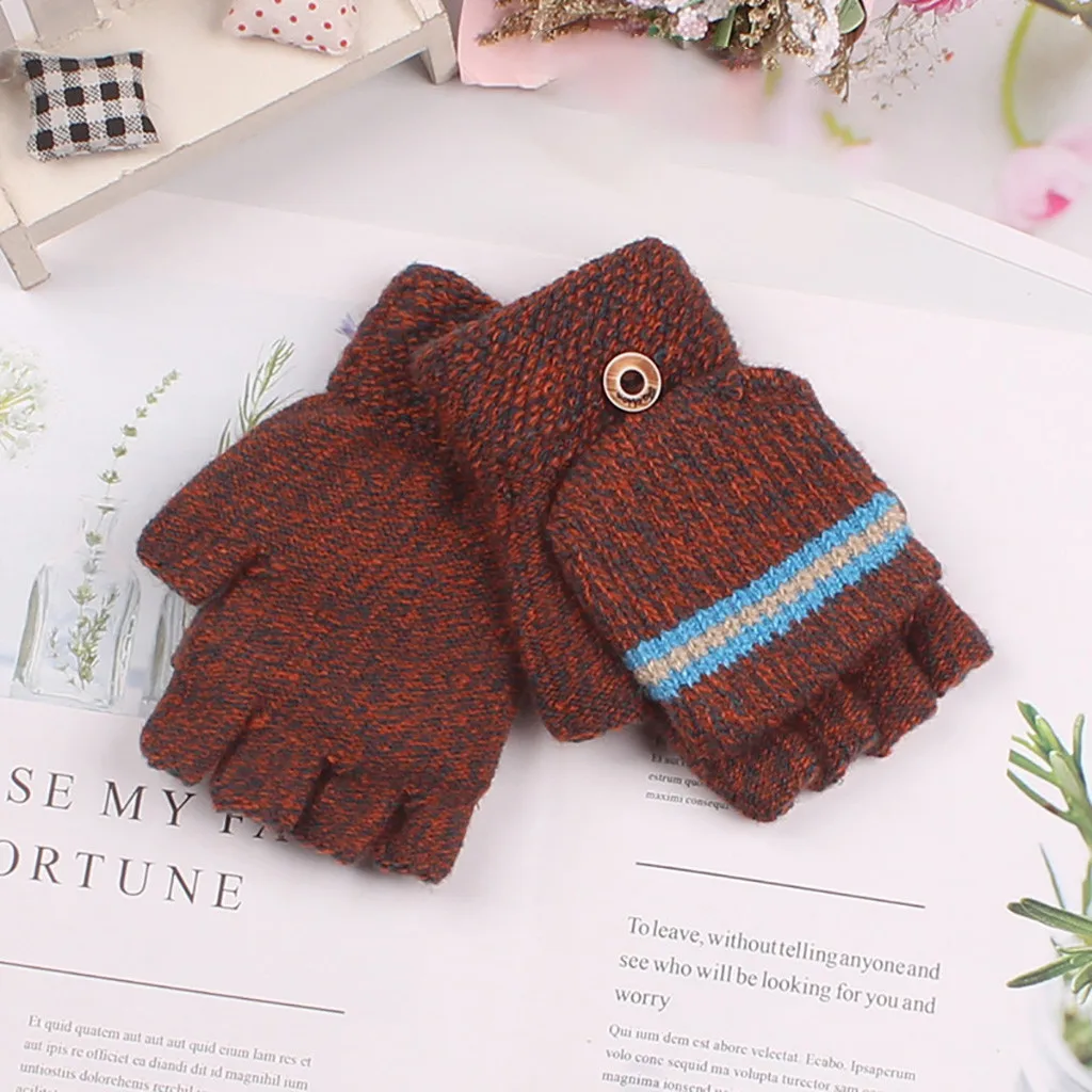 Зимние Детские перчатки больших размеров, вязаные перчатки с полупальцами, перчатки для мальчиков из пряжи AB