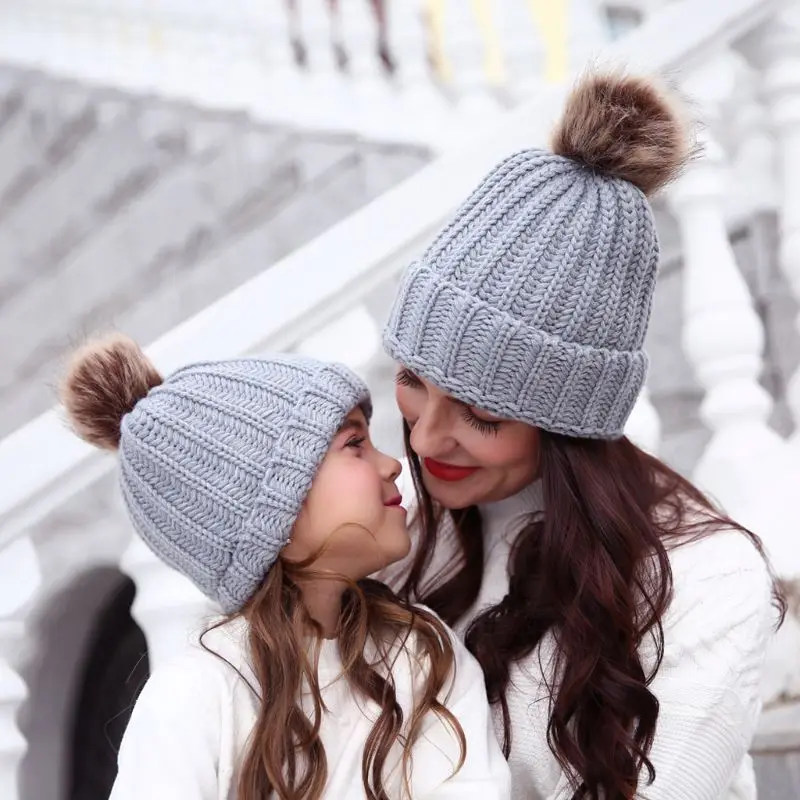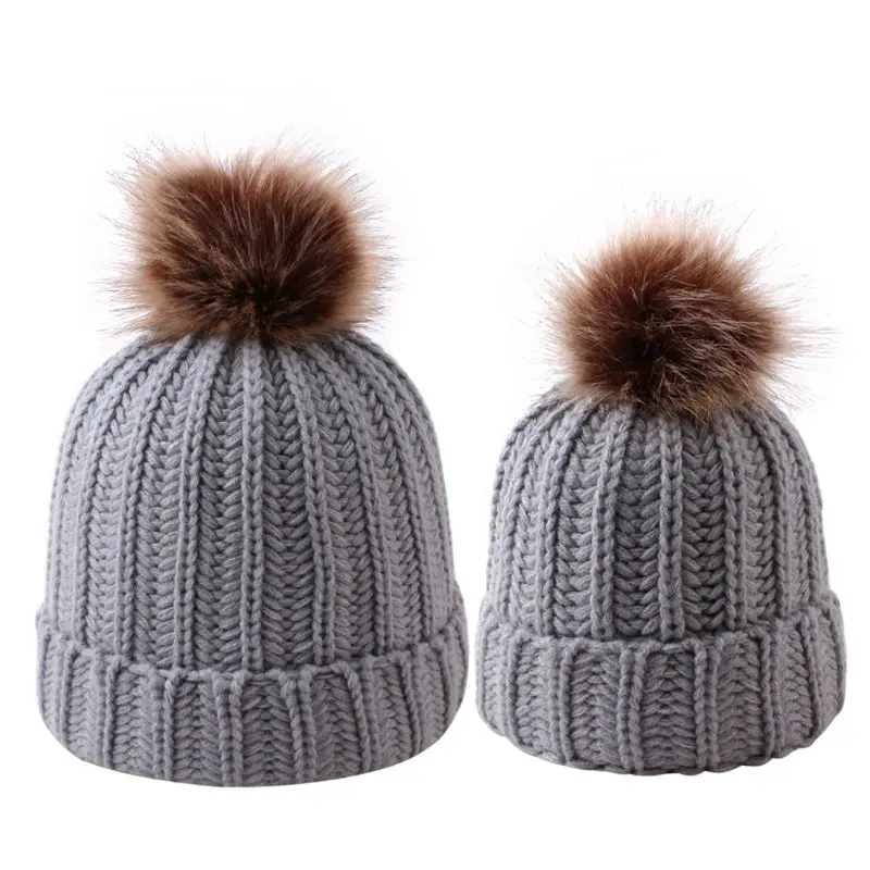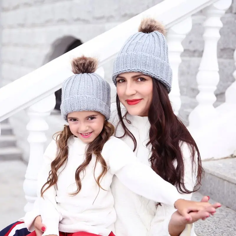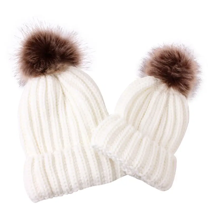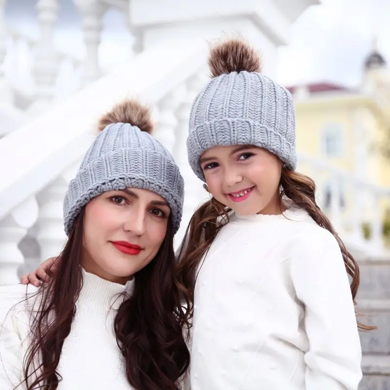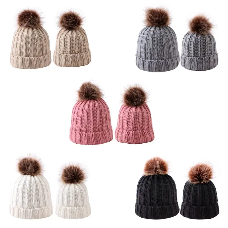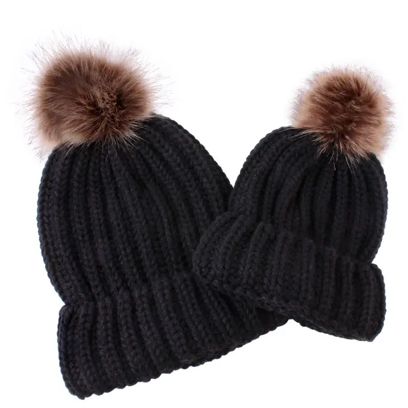Модная шапка для родителей и ребенка, Милая зимняя шапка с помпоном для малышей, меховая шапка с помпоном, теплая вязаная шапка для мамы и ребенка, шапка для новорожденного