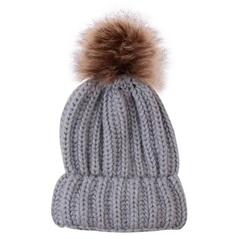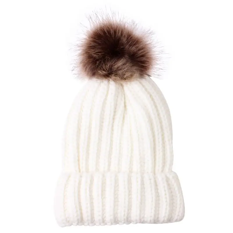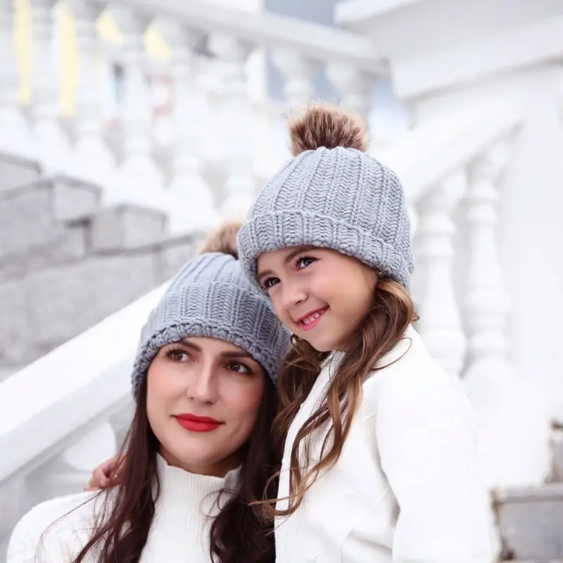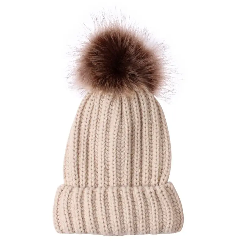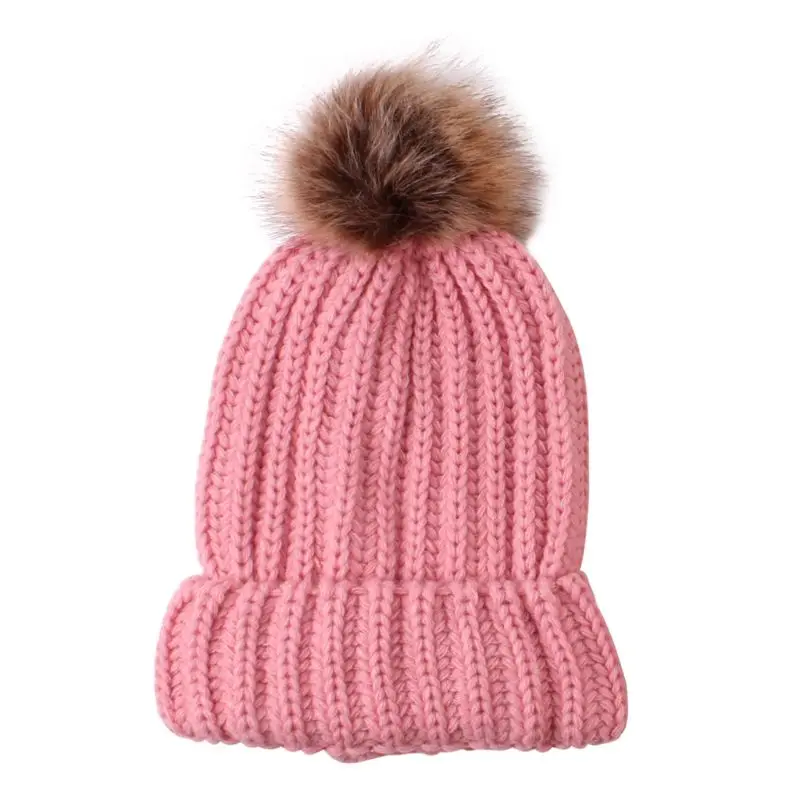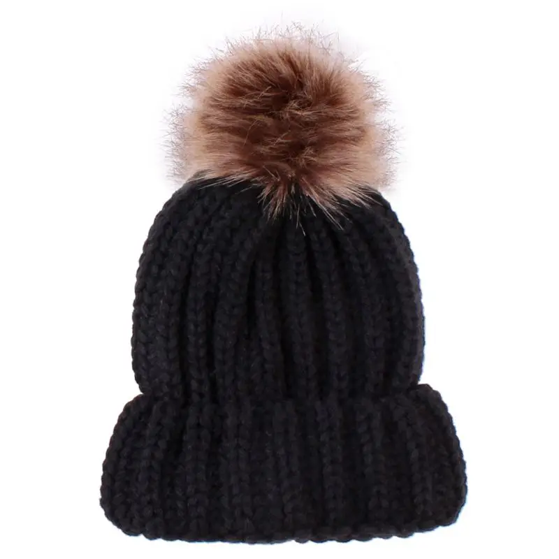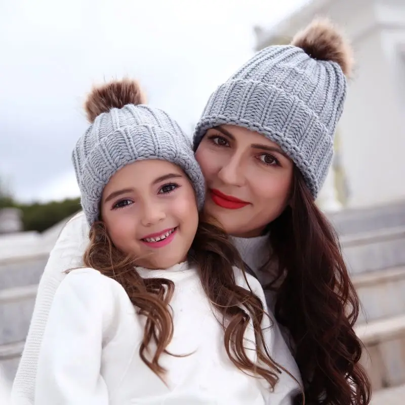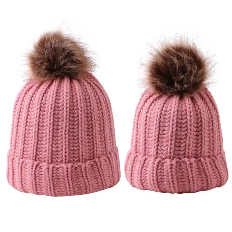 Модная шапка для родителей и ребенка, Милая зимняя шапка с помпоном для малышей, меховая шапка с помпоном, теплая вязаная шапка для мамы и ребенка, шапка для новорожденного