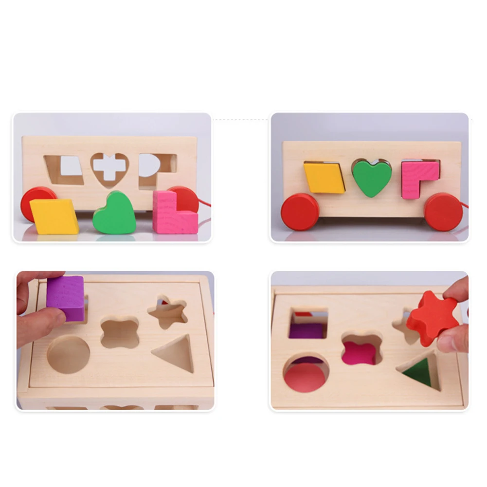 Деревянные блоки форма сортировщик ходьба тянуть вдоль модели автомобиля образовательные детские игрушки