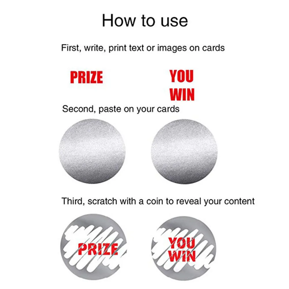-Вы можете оставить сообщение на Вашей индивидуальной карте, написать или напечатать & ldquo; Попробуйте еще раз & rdquo; Или & ldquo;winner & rdquo; Или другой контент на карте, затем очистите и вставьте эти наклейки, чтобы настроить свою собственную карту царапин.