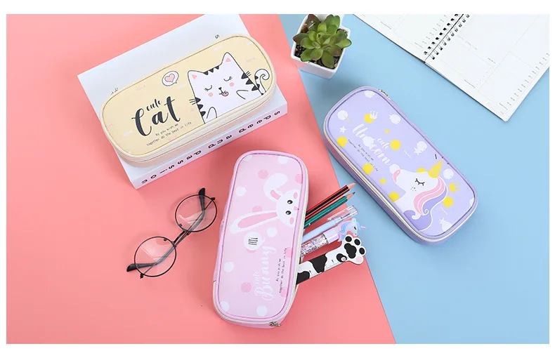 Чехол-карандаш SQUMIDER с большой емкостью, пенал из искусственной кожи, креативные животные, пенал для школы, стационарные принадлежности, подарок для детей
