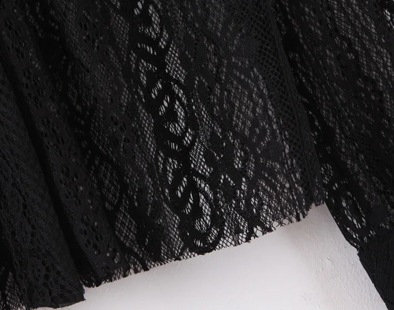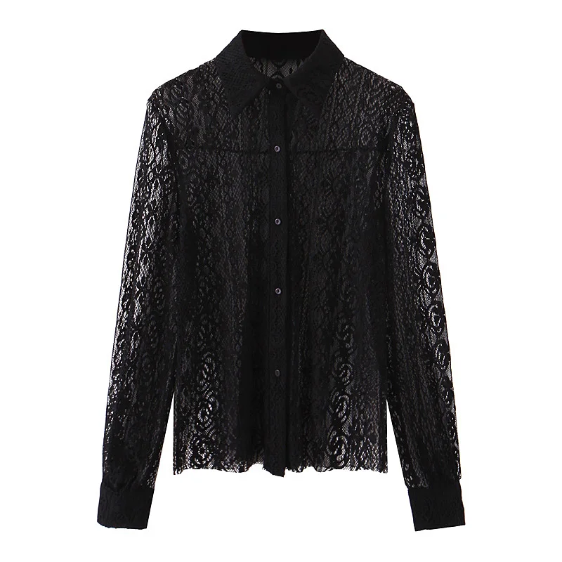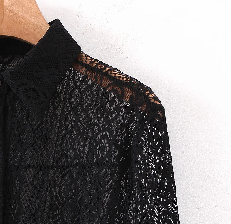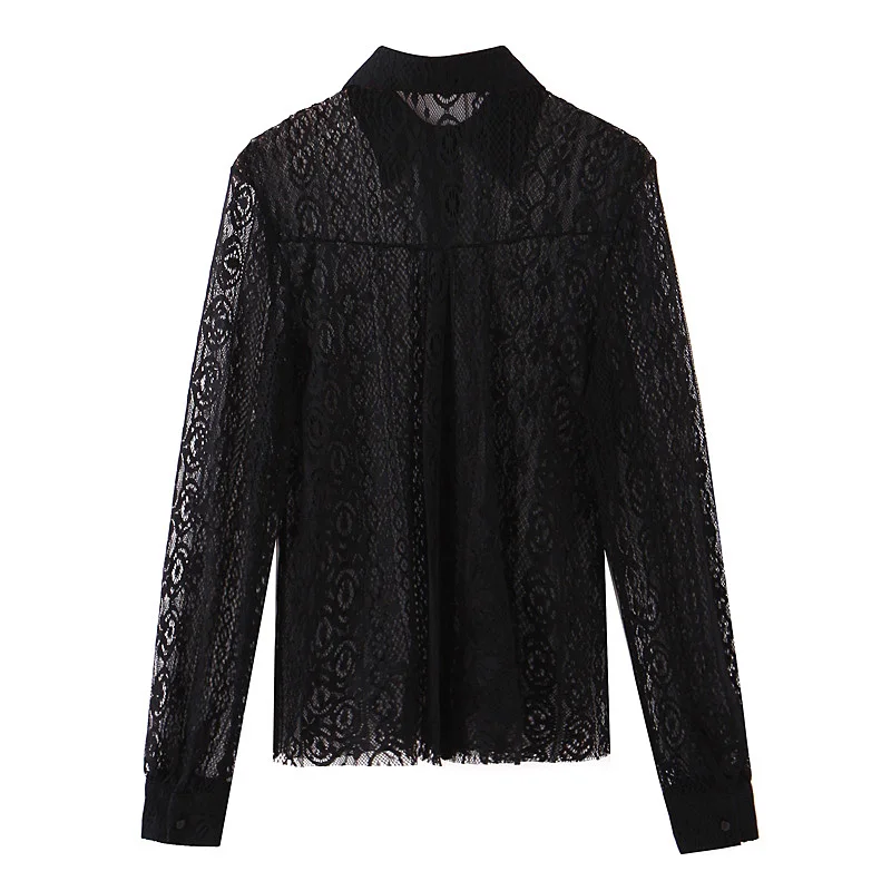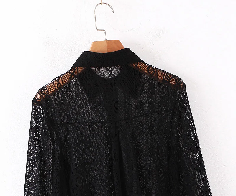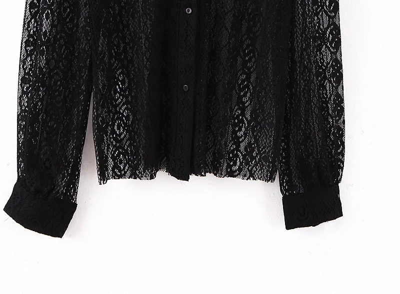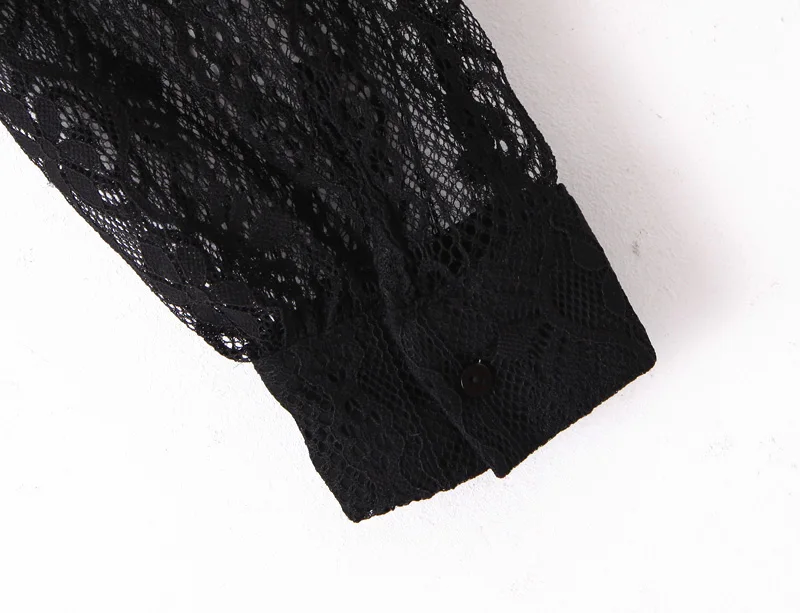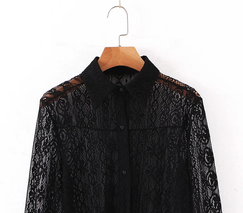SyouyonStar Женская Черная кружевная блузка, Осенние сексуальные прозрачные рубашки с длинным рукавом, топы с отложным воротником, 2019 blusas