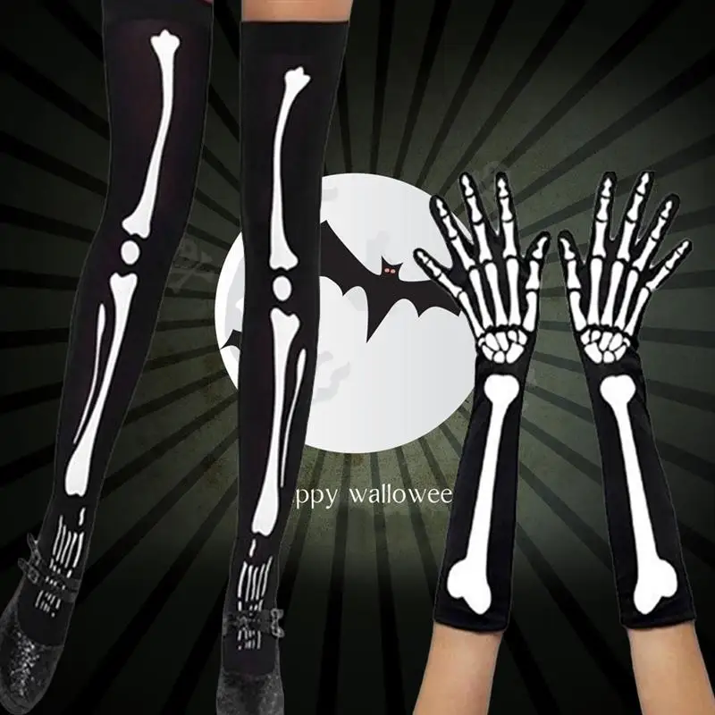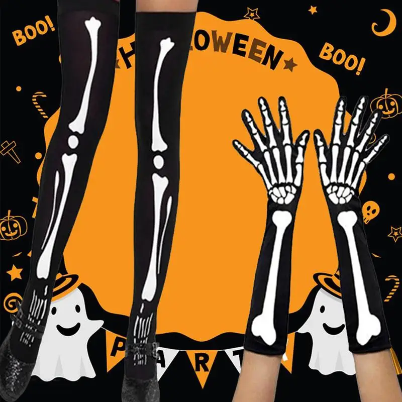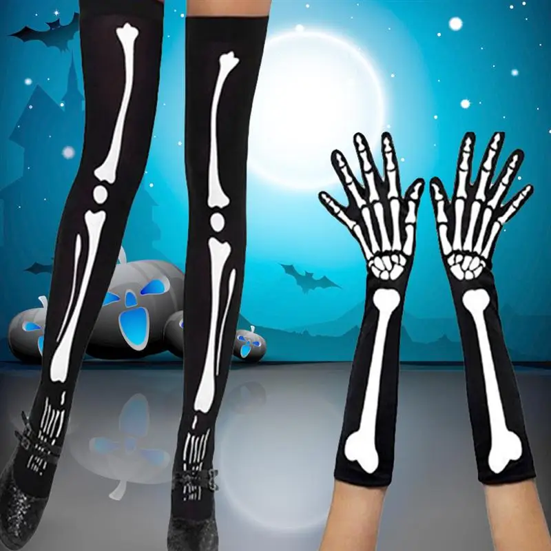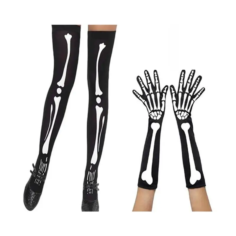 2 Pair Bone Socks Gloves Horror Party Socks Gloves for Carnival Cosplay Dancing