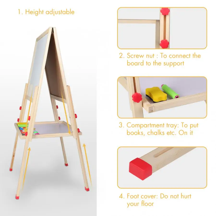 3-в-1 отдельно стоящий Регулируемый художественный мольберт с аксессуарами для детского игрового времени