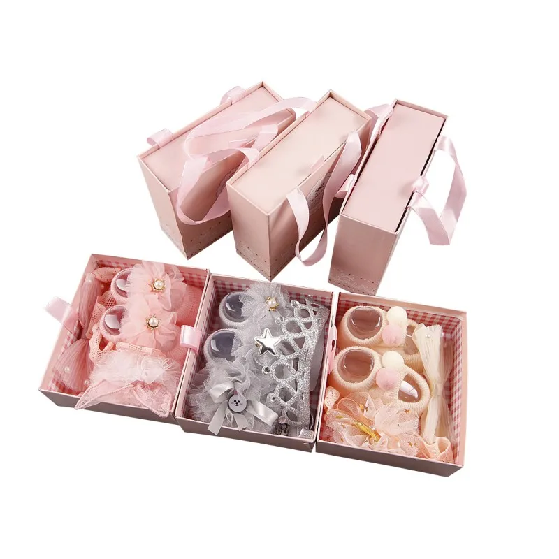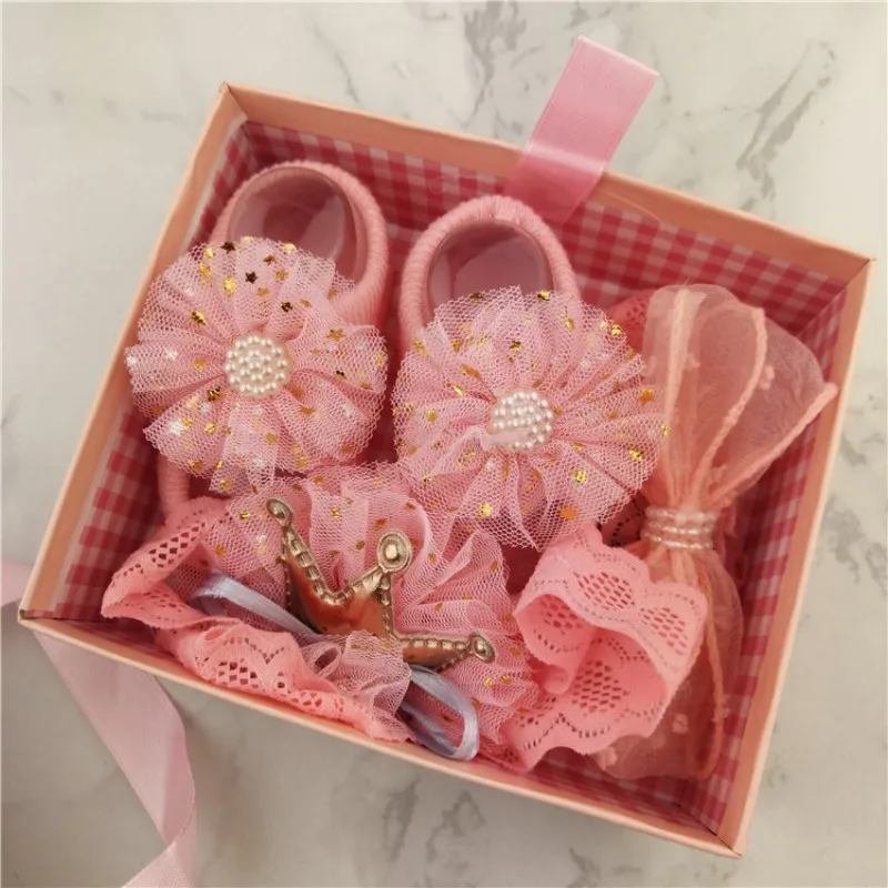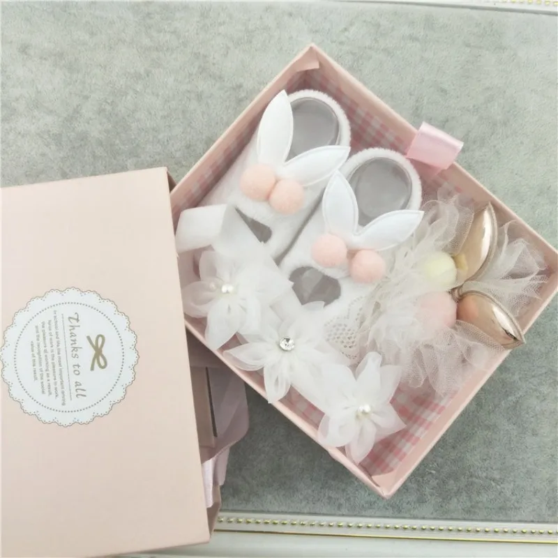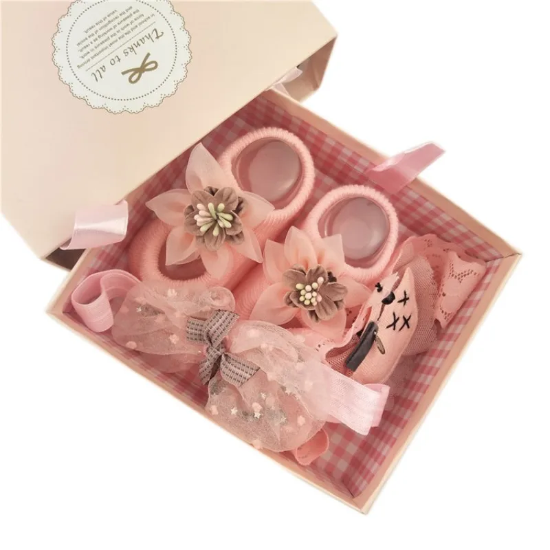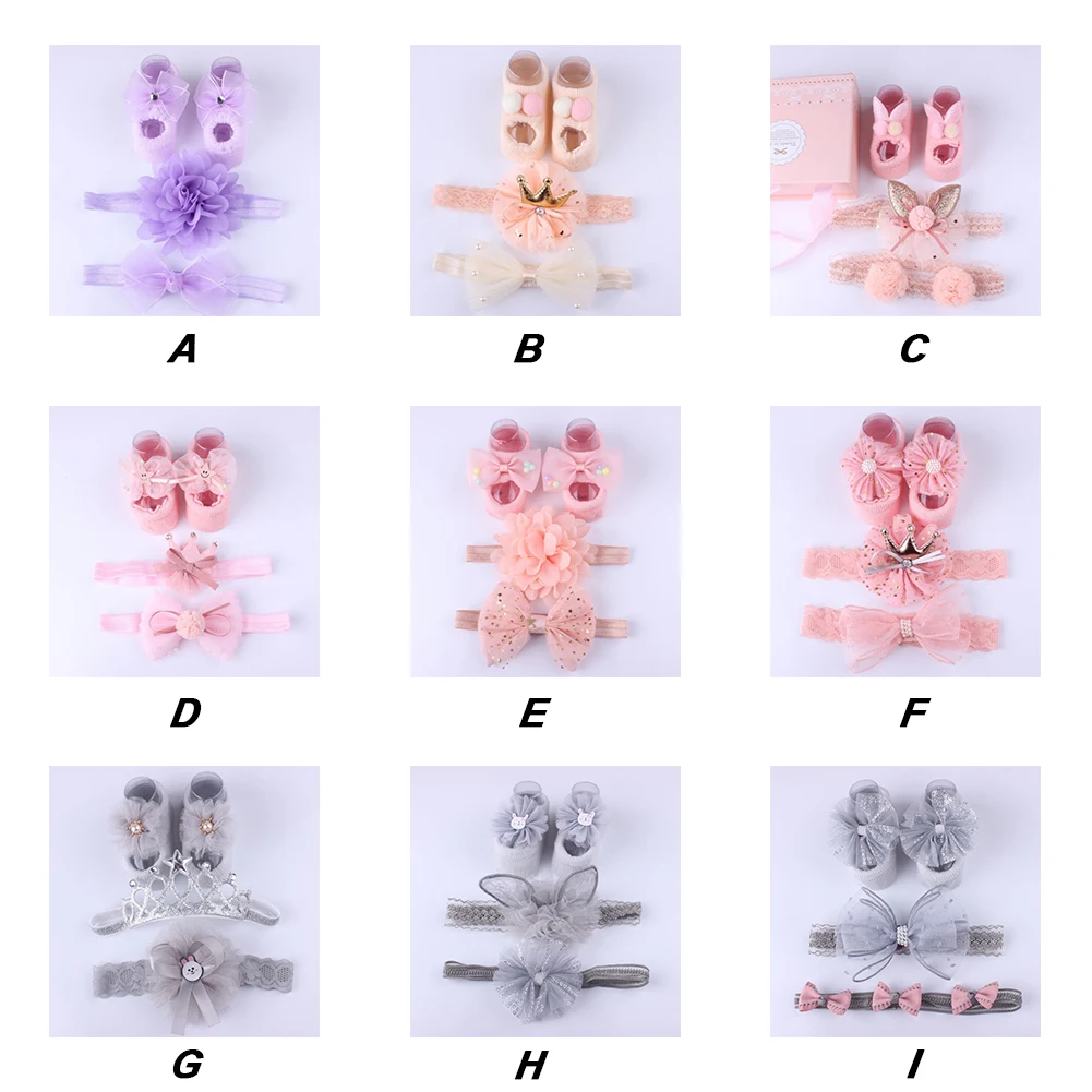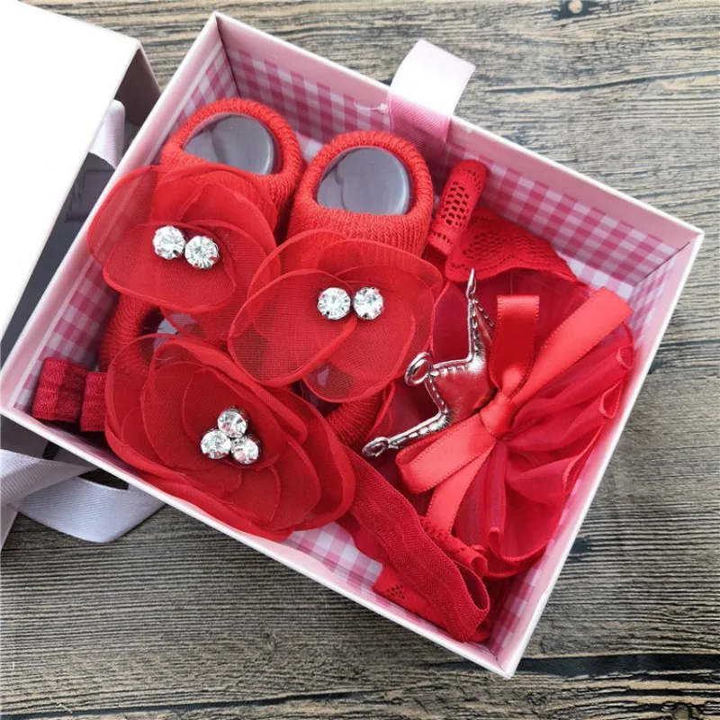 Повязка на голову для новорожденных девочек с бантом и цветами; тканевые резинки для волос; аксессуары для волос; носки в подарочной упаковке; костюм из трех предметов; рождественские подарки