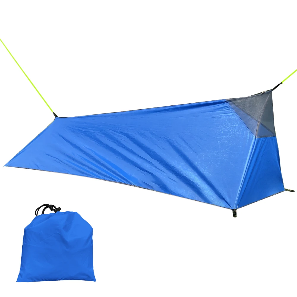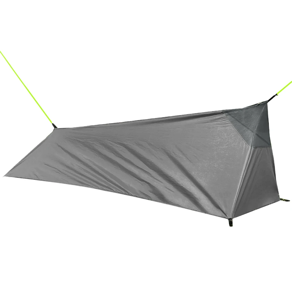 Легко установить, без опорных полюсов, может просто работать с двумя альпенштоками, или двумя прочными ветвями и бамбуком.