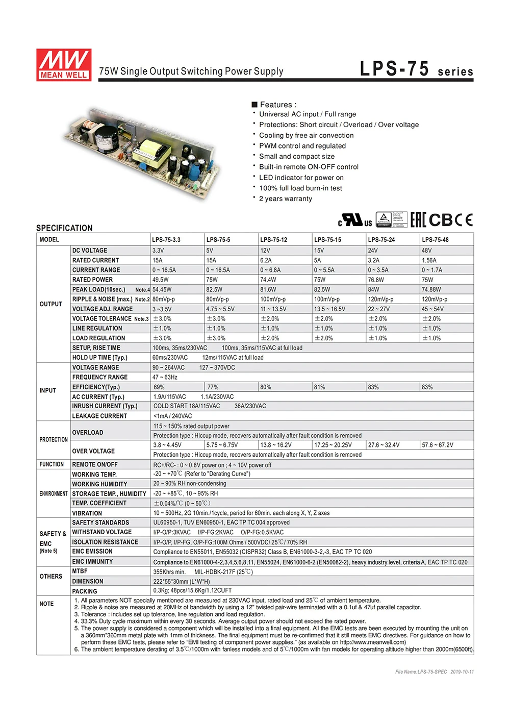 Универсальный AC вход/полный диапазон Защита от короткого замыкания/перегрузки/перенапряжения Охлаждение с помощью бесплатной конвекции воздуха ШИМ и регулируемых Небольшой и компактный размер Встроенный пульт дистанционного управления ВКЛ-ВЫКЛ Тест на сжигание при полной нагрузке (100%) Светодиодный индикатор включения 2 года гарантии