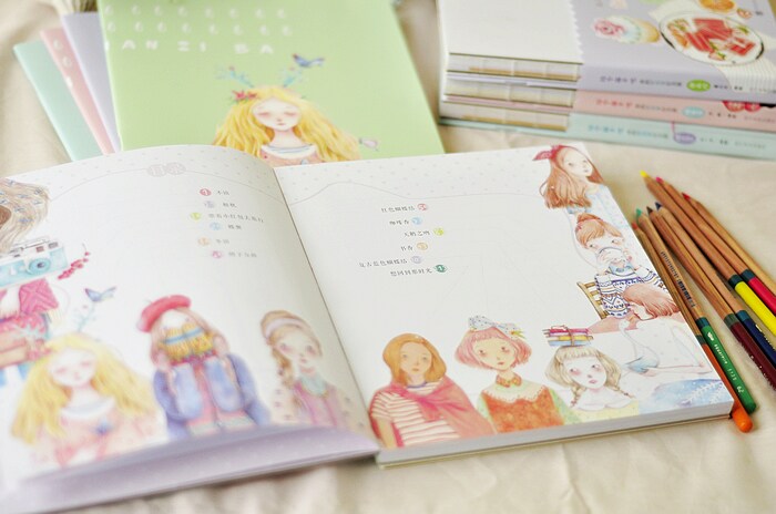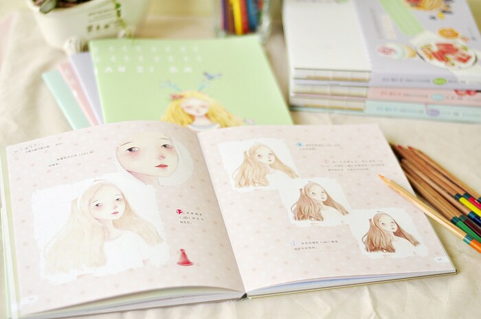 Замечательный японский стиль прозрачная акварель учебник красивая девушка