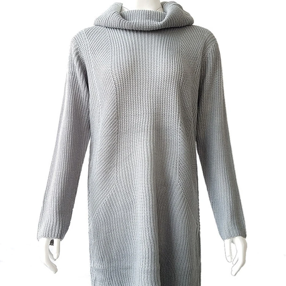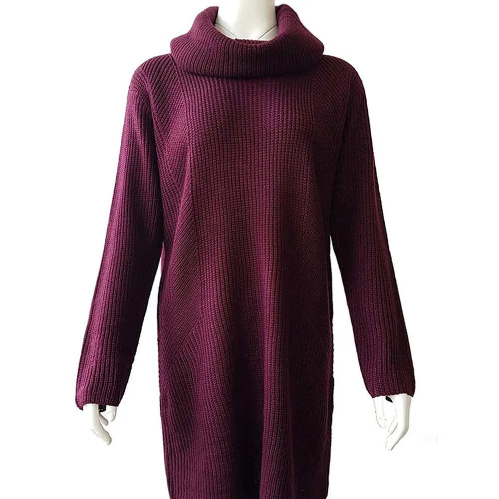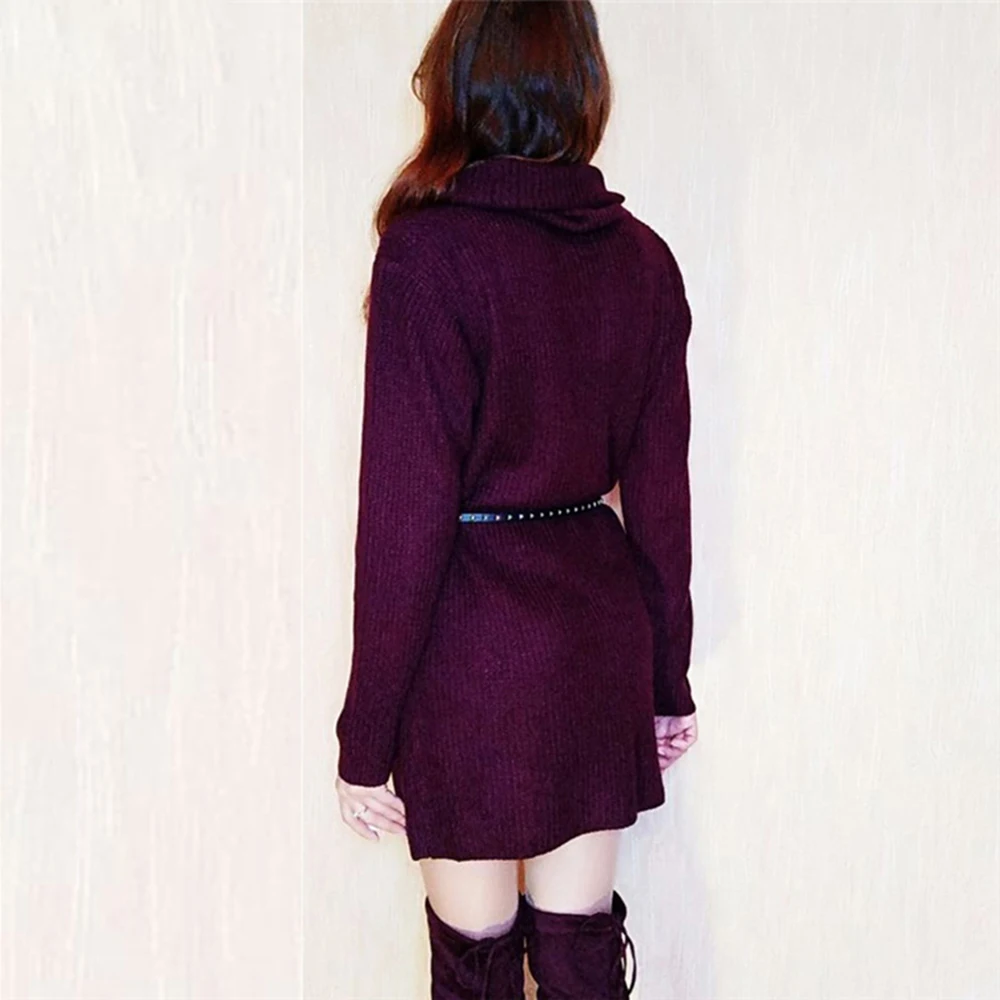 Водолазка размера плюс, осенне-зимнее платье, трикотажное, одноцветное, свободное, мини, повседневное, более размера d, платье-свитер для женщин, с длинным рукавом, облегающее