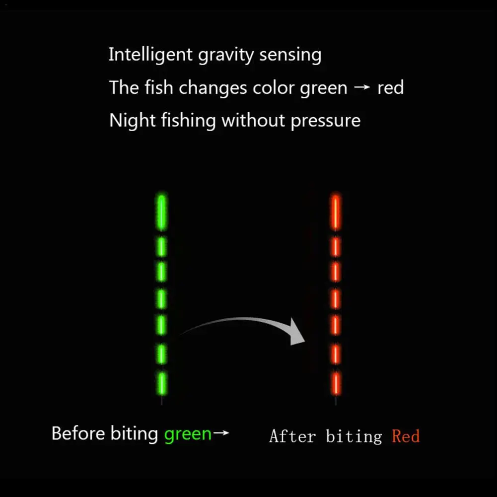 1. Микрогравитационный электронный поплавок, меняющий цвет, встроенный G-SAFE чувствительный к гравитации электронный чип. Пока рыба впивается в верх, зеленый светильник станет красным.