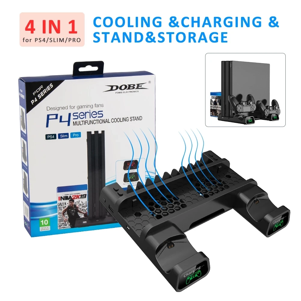 DOBE для PS4/ PS4 Pro/ PS4 тонкая консоль вертикальная охлаждающая подставка контроллер Зарядная база 2 вентилятора 10 игровых накопителей для Playstation4