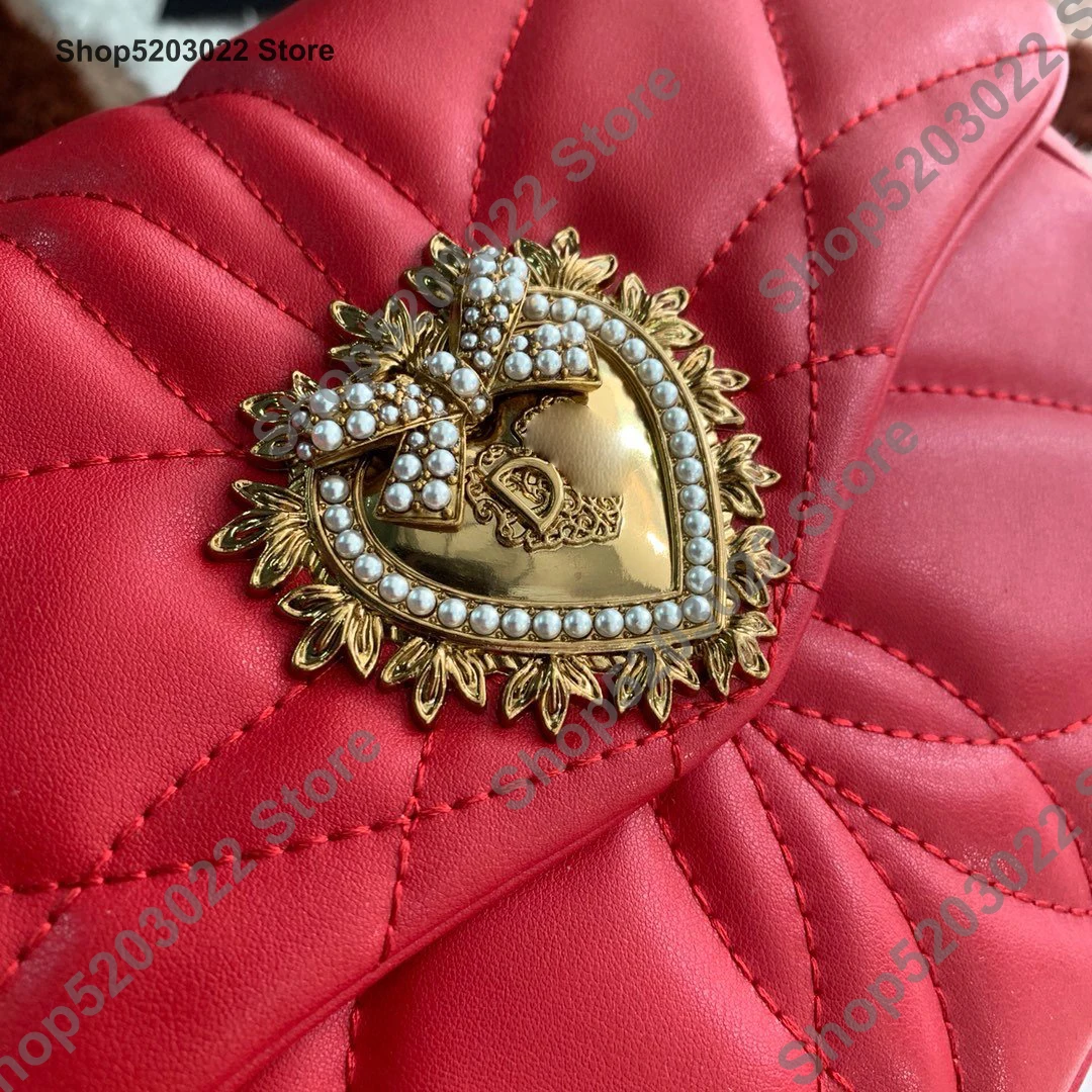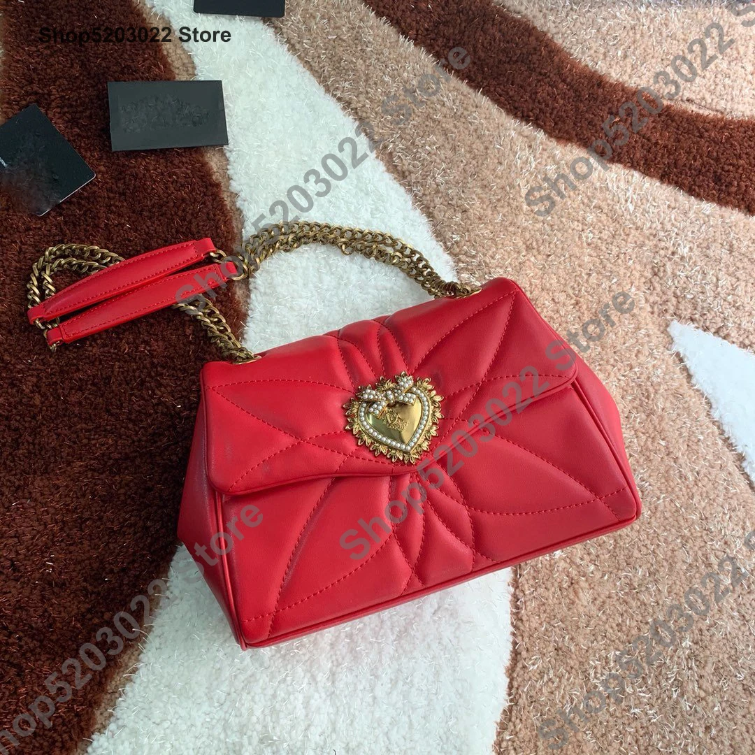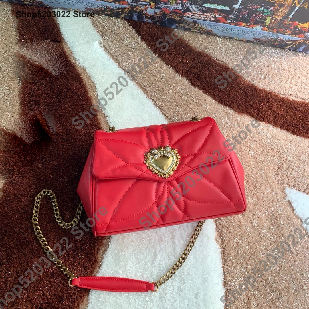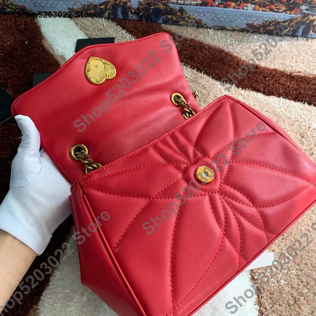 Красная натуральная кожа Herbst und Winter neue Kette Leder eine Schulter Frau Tasche Herz Brief Messenger Handtasche