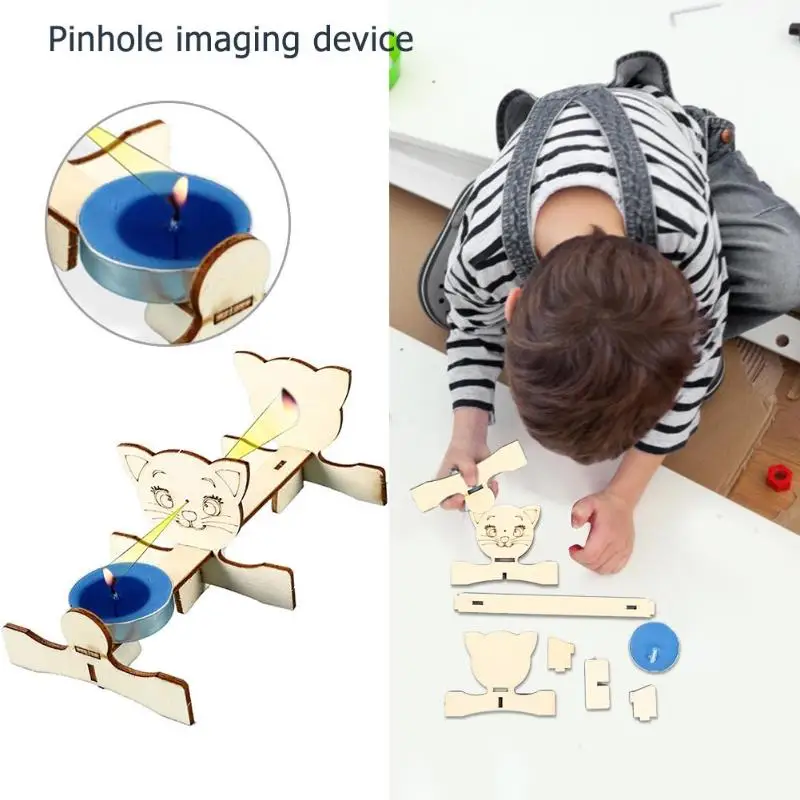 Материал: дерево Размер: 14,5*7,5*6 см/5,7*3,0 * 2.4in Рекомендуемый возраст: старше 4 лет Свеча (высота около 1 см): не входит в комплект Класс знаний: Используя пластину с небольшим отверстием между экраном и объектом, изображение объекта будет формироваться на экране, мы называем это явление съемкой изображения. Перемещая среднюю пластину назад и вперед, изображение на экране изменит размер, что объяснит, какой светильник движется прямыми линиями. Обратите внимание: При сборке изделий красный провод подключается к положительному полюсу аккумуляторной коробки, а синий провод подключается к отрицательному полюсу аккумуляторной коробки. Все товары не несут батареи; Цвет аксессуаров случайный; Не указывайте цвет. Пожалуйста, внимательно прочитайте перед покупкой. Содержит мелкие аксессуары и острые предметы. Дети должны сопровождать взрослых. Пожалуйста, позаботьтесь о детях и избегайте глотания. Примечание: В связи с различиями мониторов и эффектами освещения реальный цвет товара может немного отличаться от цвета на фотографиях. Спасибо! Обратите внимание, что допускается отклонение в диапазоне 1–3 см из-за проведения замеров вручную.