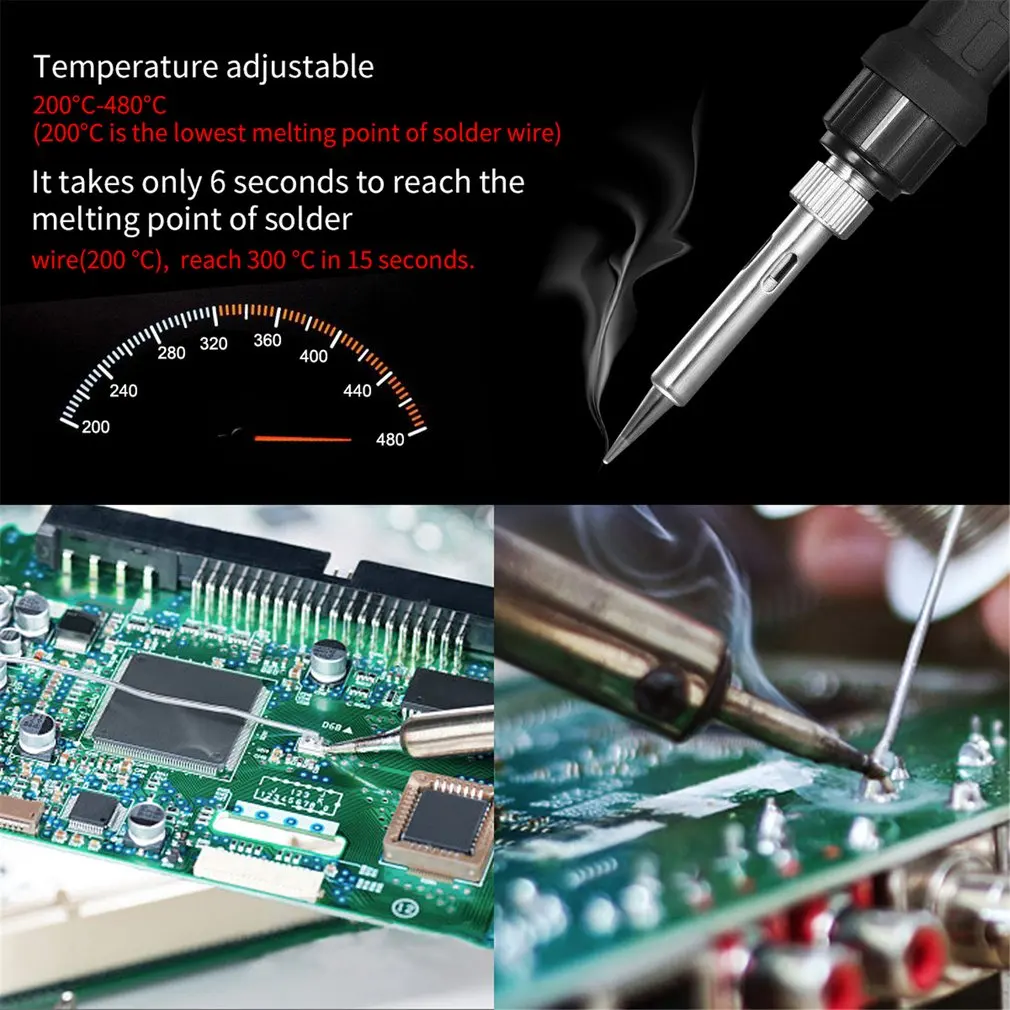 6. Быстрый нагрев, это занимает всего 6 секунд, чтобы достичь температуры плавления припоя (200 °C), достичь 300 "за 15 секунд.