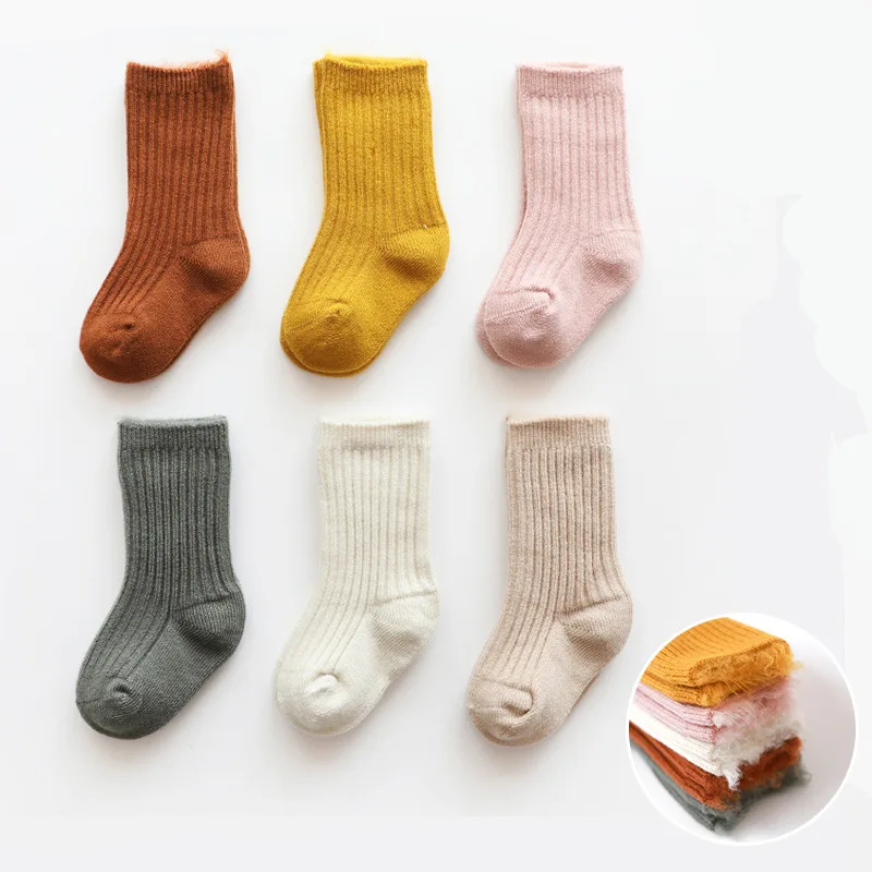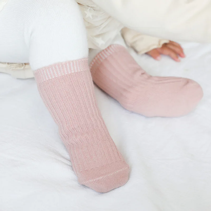 Носки для малышей Зимние Детские гетры, кашемировые носки-тапочки для новорожденных однотонные носки для мальчиков и девочек детские носки, От 0 до 3 лет