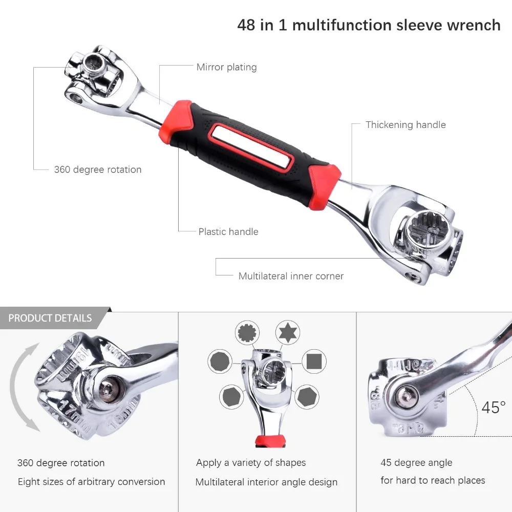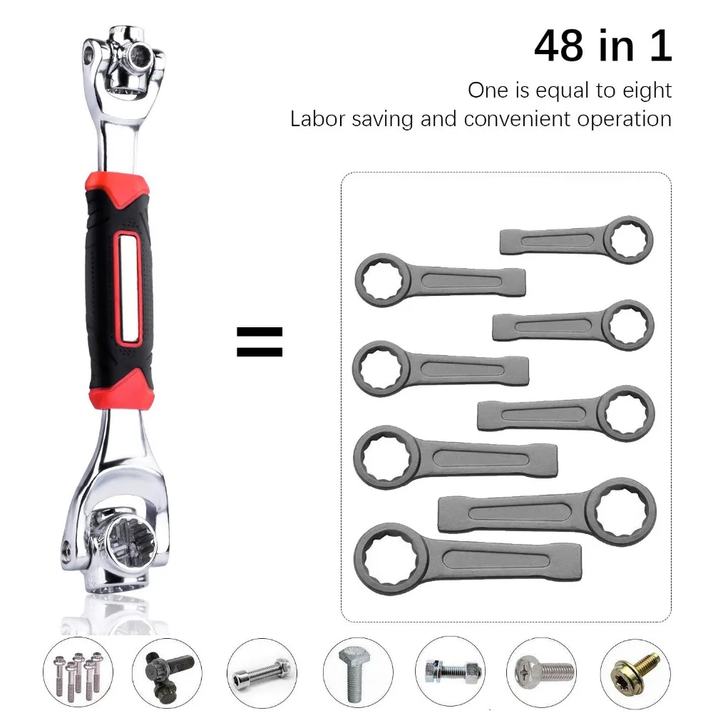 - Многофункциональный гаечный ключ с храповым механизмом AMKOY 48 в 1, 6 точечных инструментов для ремонта автомобилей, 360 градусов, многофункциональный универсальный гаечный ключ