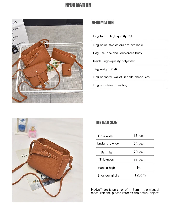 Особенности: -- Превосходное мастерство, чистая строчка и высококачественные металлические аксессуары. -Хорошо сделано, работает гладко и равномерно, комфортно на ощупь. -- Прекрасный набор сумок, чтобы поделиться с вашим лучшим другом или семьей.