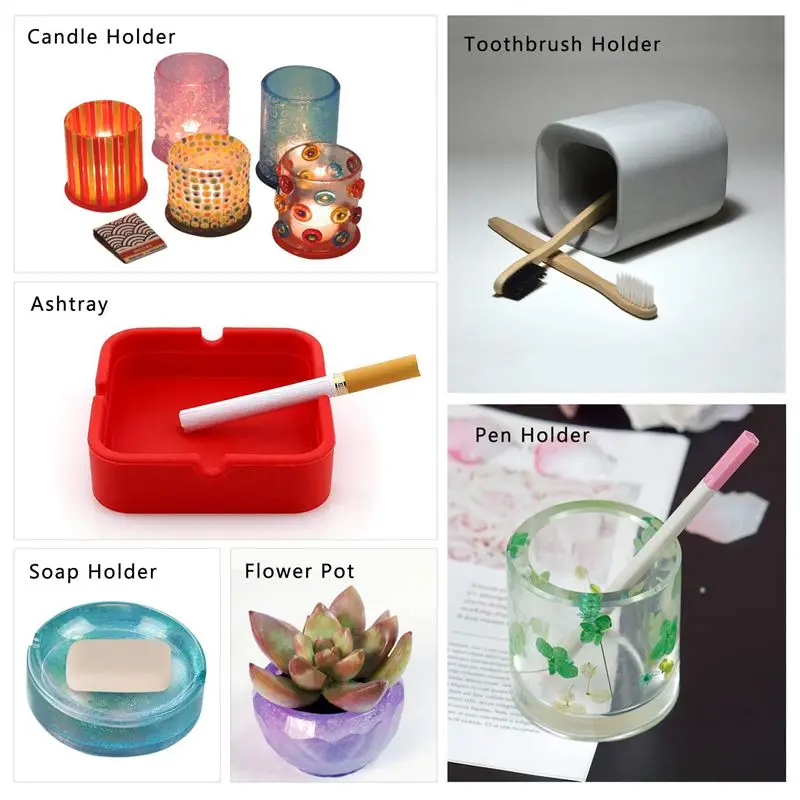 Эти большие формы для смолы совместимы с большинством смол или других литых материалов, таких как эпоксидная смола, полиэфирные смолы и т. д. Идеально подходит для рукоделия, горшка для цветов, пепельница, держатель для ручек, подсвечник, держатель для мыла, бантик для хранения и т. д.