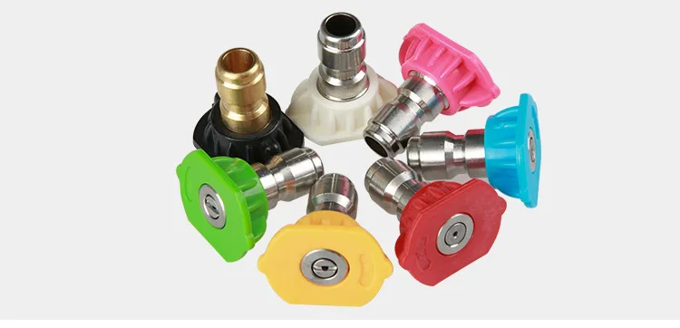Аксессуары для мойки высокого давления включают 7 наконечники распылителя + 90 градусов быстроразъемный Соединительный соединитель, которые совместимы с мойщиками высокого давления известных брендов, поддерживающих до 4500 фунтов на квадратный дюйм.