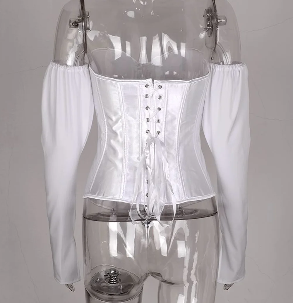 Женская блузка с открытыми плечами шифоновая без рукавов оборками в Корейском