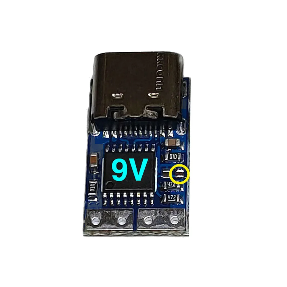 * Вы можете установить максимальный триггер до 15 В или 20 в логики, используйте каплю припоя, чтобы соединить желтый круг и две половинки колодки, чтобы установить 20 в вместо 15 В.