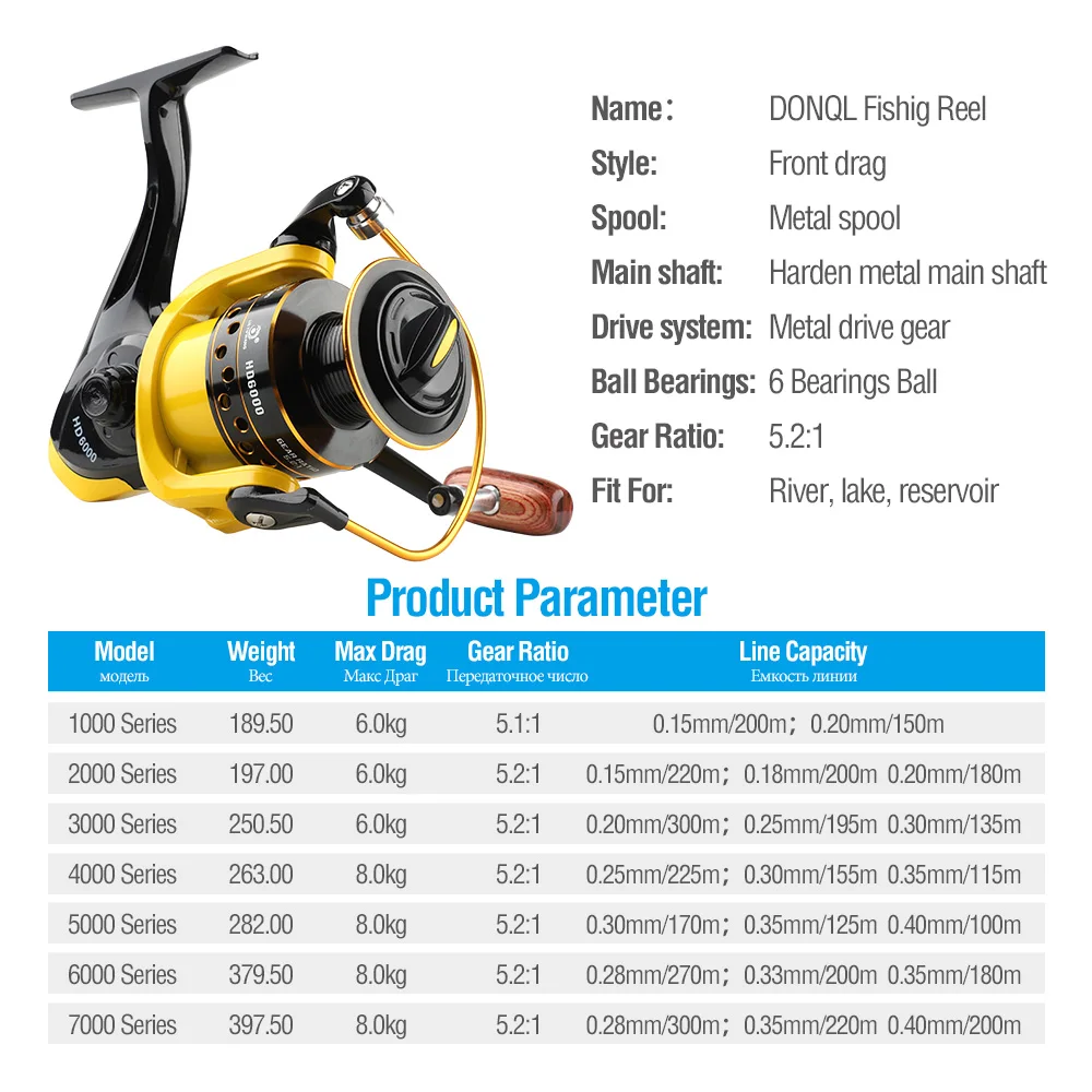 Спиннинговая Рыболовная катушка DONQL, металлическая катушка, максимальная тяга 8 кг, рыболовная Катушка 5,2: 1, высокоскоростные Рыболовные катушки для карпа, рыболовные снасти