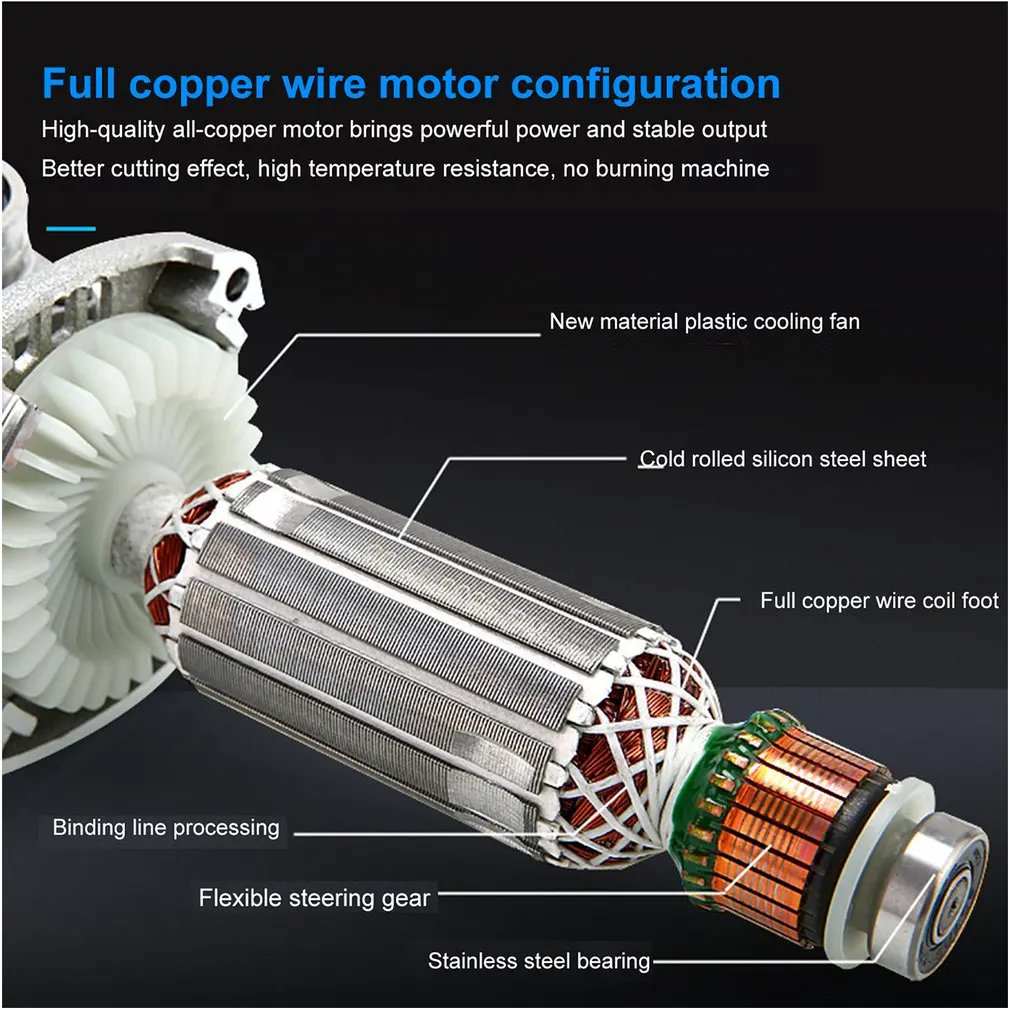 1. Высококачественный полностью Медный двигатель обеспечивает мощную мощность, стабильную выходную мощность, лучший эффект резки, высокую термостойкость и отсутствие горения.