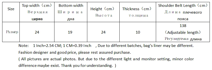 Таблица размеров
