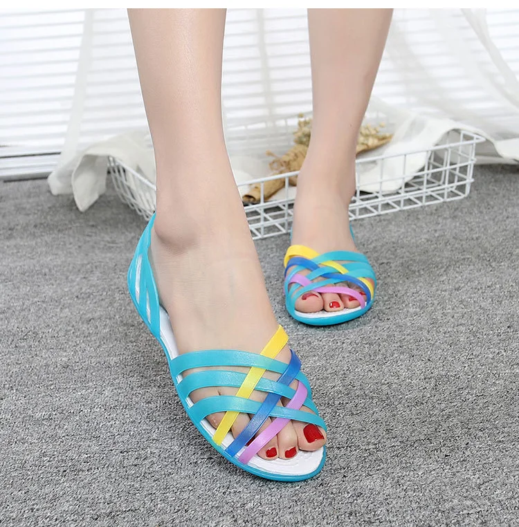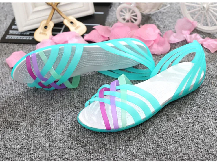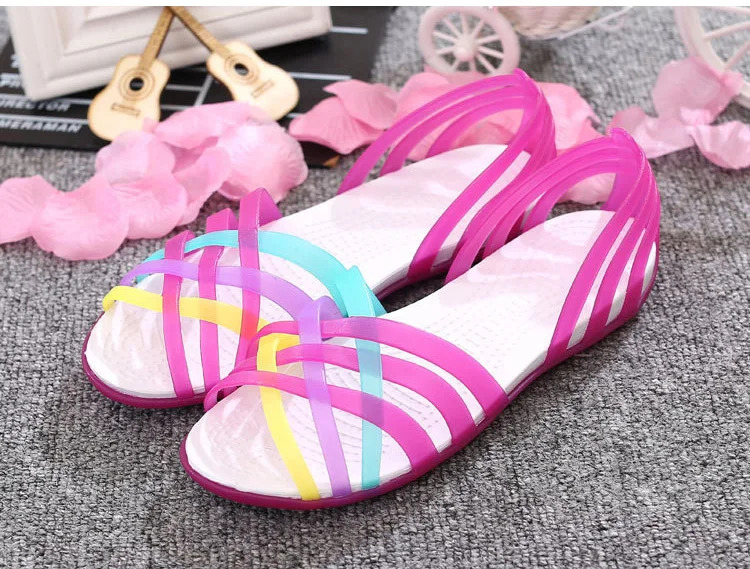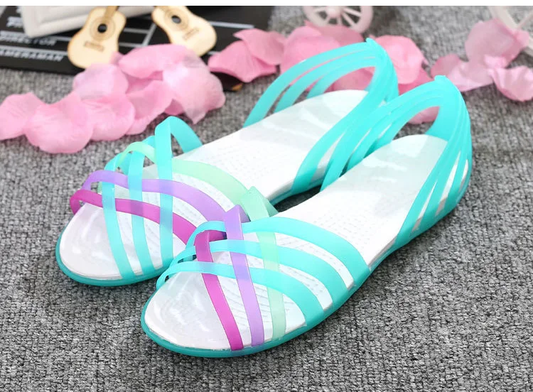Желейная обувь, новые женские сандалии, удобная женская обувь, сандалии из пвх на плоской подошве, разноцветные пляжные сандалии, женская обувь, Sandalias Mujer