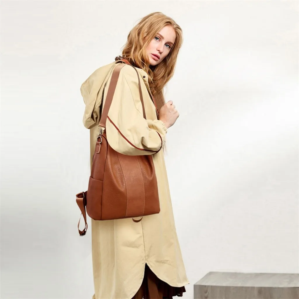 Женский рюкзак с защитой от кражи, классический однотонный рюкзак из искусственной кожи Mochila Feminina, модная двойная сумка через плечо, Sac A Dos